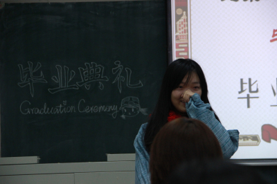 350vip浦京集团官网学生会主席李振江同学首先代表同学们表达对朱赫同学的不舍与期望。随后,播放了一段展现朱赫同学大学生活的视频,欢送会现场弥漫着淡淡的感伤。由男生反串出演的话剧《呵呵的一天》,表现朱赫大学生活中令人捧腹的几个瞬间,迅速活跃了现场气氛,戴明明、何永欢两位同学带来了诗朗诵《沙扬娜拉——送呵呵女郎》(吴天伟同学填词),甜美动人的女声,配着 “新疆”风味的朗诵,起到了诙谐搞笑的效果。男班长张一鸣同学授予朱赫由大家亲手制作的学士服、学士帽、学位证书以及“最美女班长”证书。其他同学依次将毕业纪念册活页赠与朱赫。欢送会现场,许多同学流下了感动的泪水。全班女生以改编版的《军中绿花》,表达对朱赫同学的不舍。 “毕业生”致辞环节,朱赫已眼含热泪,她的发言依然幽默,带着感伤,在场同学十分动容。“典礼”的最后,全体同学“毕业合影”留念。,欢送会一直沉浸在欢乐、温馨又令人感动的氛围中,许多同学忍不住流下感动的泪水所有班级成员得以团聚,为自己的姐妹送别,其乐融融。
