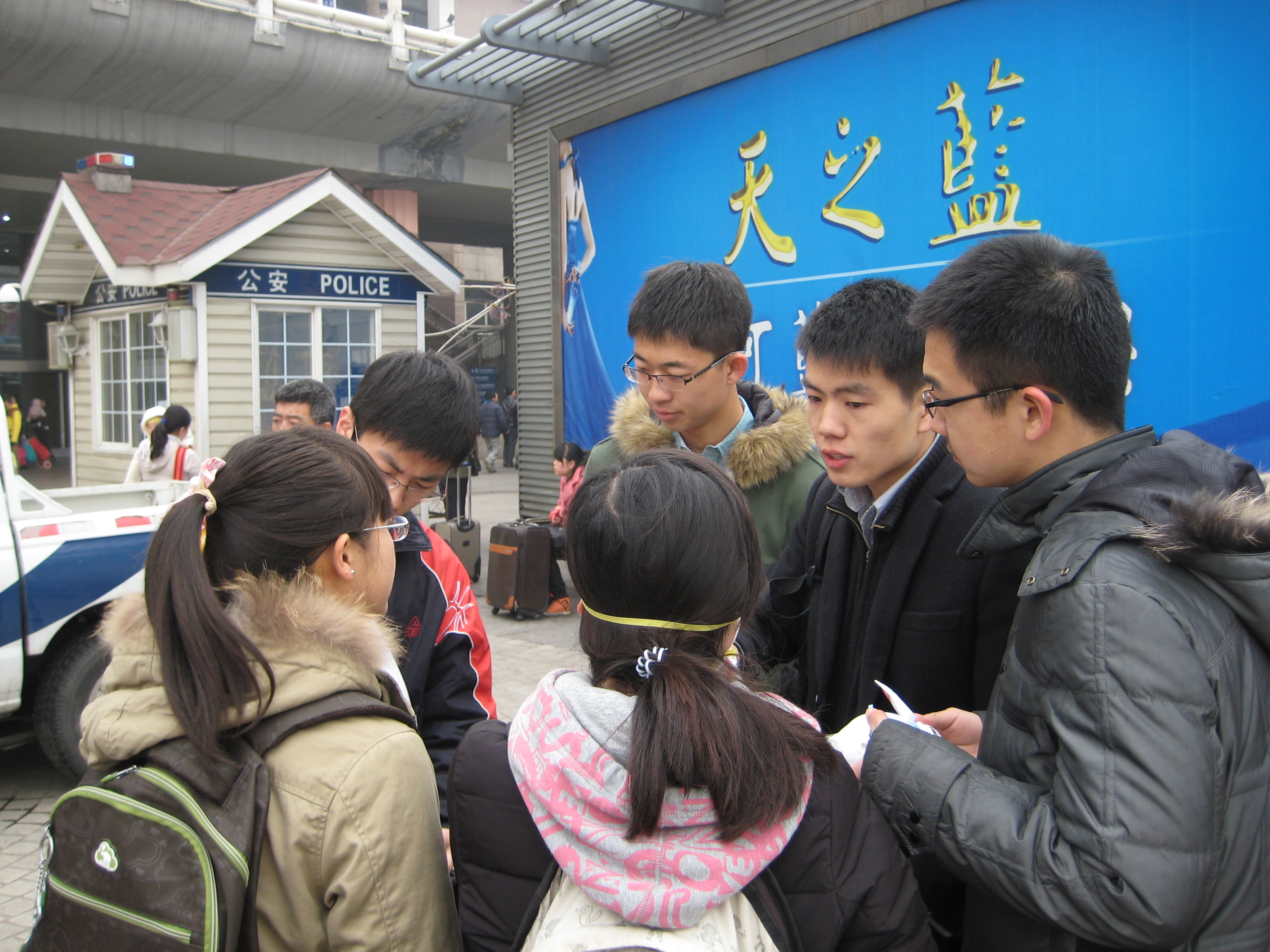 活动过程中,同学们以高昂的激情喊出宣传口号“关注PM2.5,抵御雾霾颗粒物”,并热情主动地为关注活动的旅客答疑解惑。
