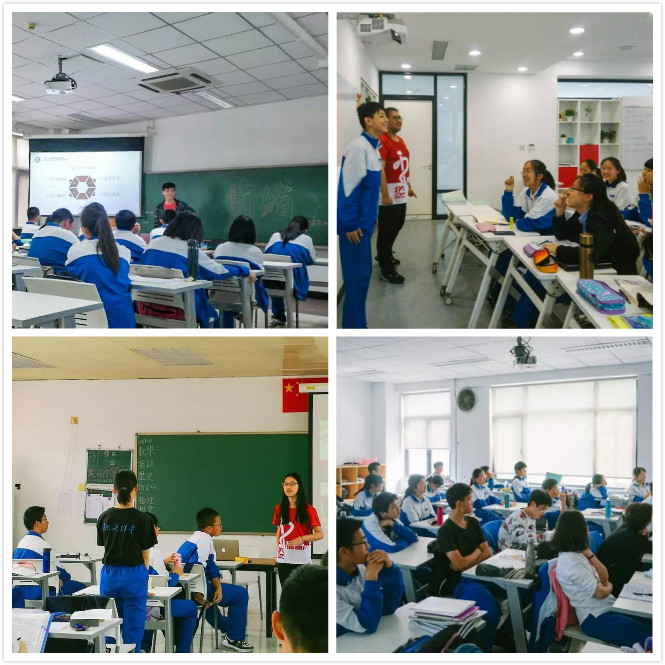 上课铃一响,志愿者们便进入北大附中初中部初二年级的各个班级开始授课。首先是理论知识讲解,志愿者们采用丰富的展示方式,视频、课件样样齐全,为初中生们介绍了情绪管理的ABC理论。