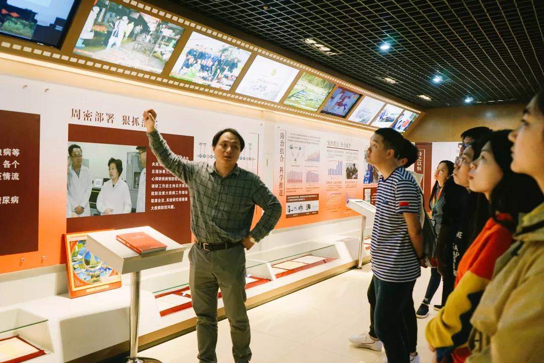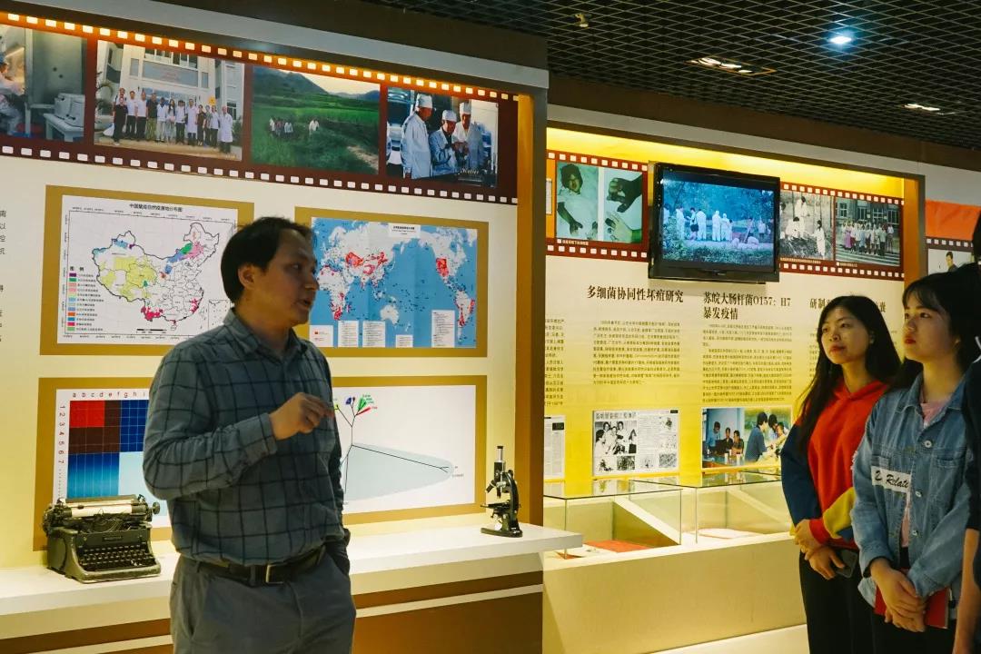 来自实验室管理处的侯雪新老师热情地接待了我们,他是北大公卫2003级的学长,在传染病所已经工作了将近十年。他带领我们参观了“防疫征程”传染病所历史成就展览,向我们讲述了我国抗击传染病的光辉历程。多细菌协同性坏疽、大肠杆菌暴发、人细胞无形体病……一起起从前出现在课本上的传染病疫情都被生动地呈现在我们面前。同学们频频点头,深受震撼。