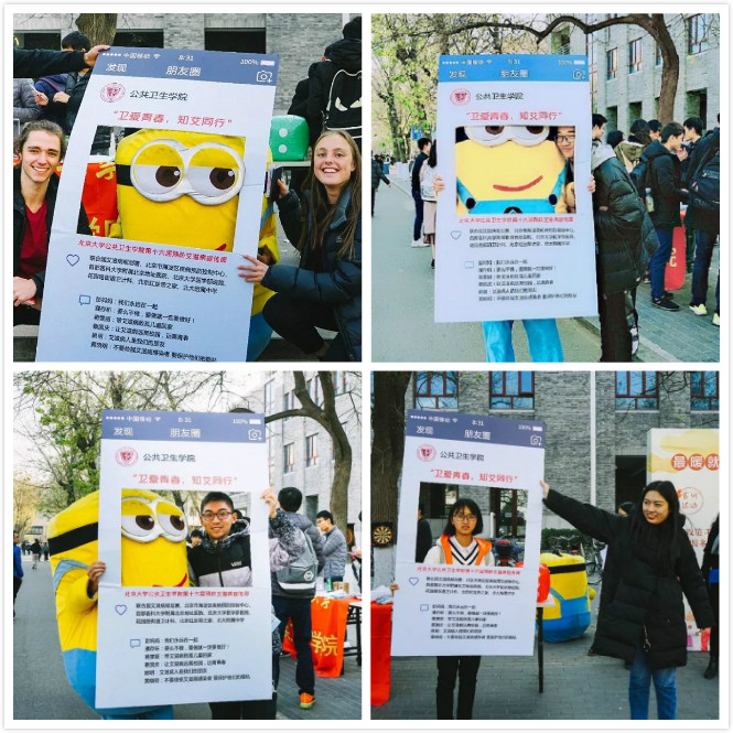 本次北大展台宣传活动灵活多变:通过讲解HIV自检设备使用方法,向青年学生们传递预防和检测艾滋病的知识,提高主动检测意识,响应国家“主动检测 知艾防艾 共享健康”的号召;“卫爱青春,知艾同行”朋友圈相框拍照,则进一步扩大预防艾滋病宣传的范围与力度,形成宣传网络;防艾问卷调查有助于同学们自我了解防艾知识储备情况,也加深了对于艾滋病基本知识的了解;掷骰子答题游戏活跃气氛,使防艾宣传在欢声笑语中更加深入人心。参与以上四种任务之一的同学即打卡完成,参与最后的投飞镖抽奖,防艾知识与纪念品双丰收!