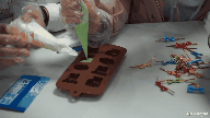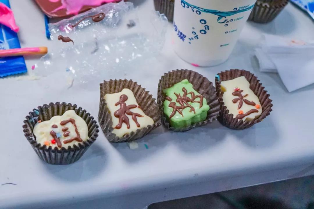 在经过简单的指导后,大家便迫不及待地纷纷动手,发挥各自的奇思妙想,制作形状各异、口味不同的巧克力。