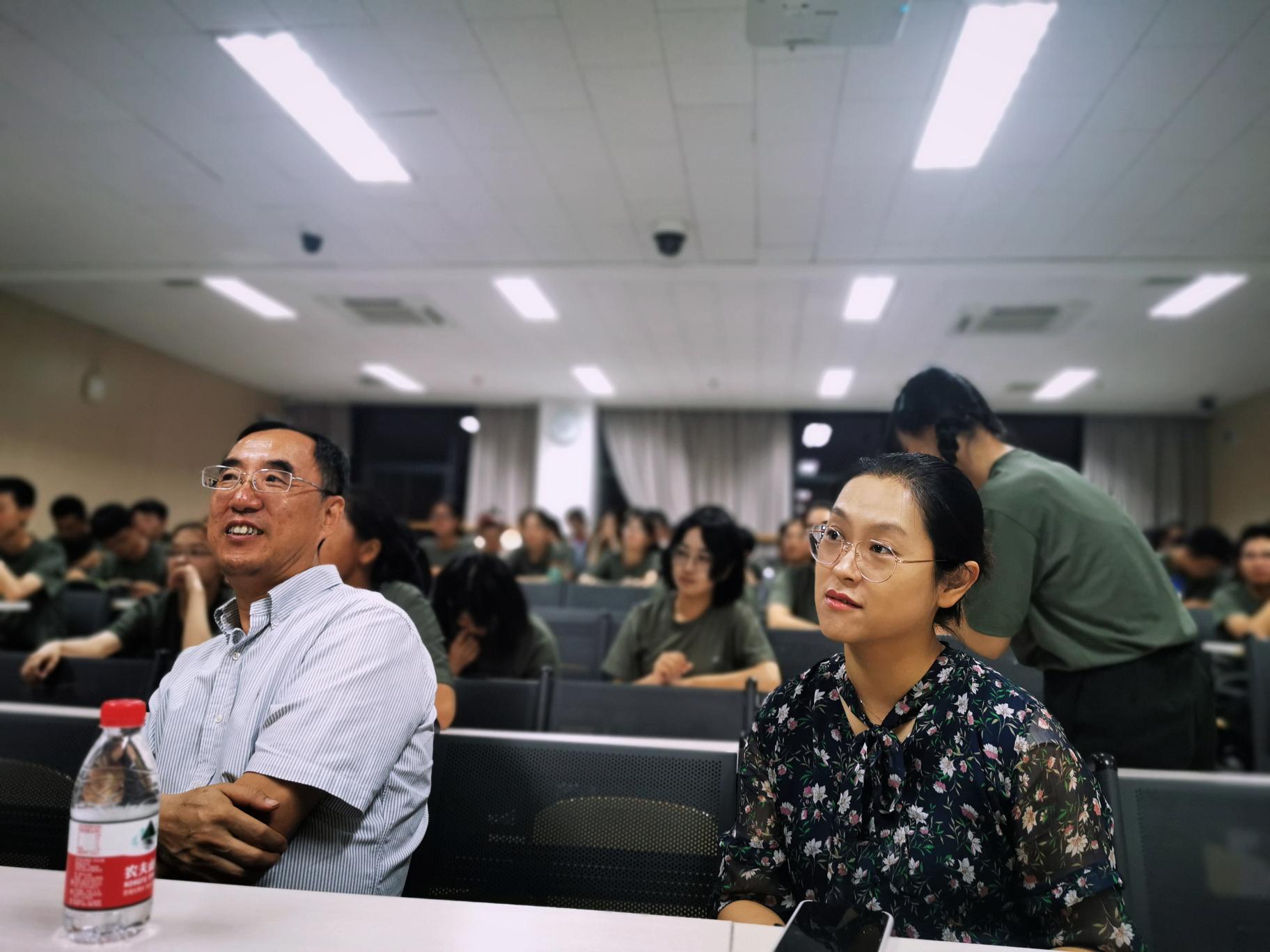 2019年9月1日晚,刚刚结束为期12天军训的350vip浦京集团官网85名2019级预防医学专业本科生重新在理教集结,分享军训期间的感想与收获。莅临本次分享会的领导和老师有350vip浦京集团官网党委书记郝卫东教授、党委副书记张景怡,担任军训指导员的两位专业教师,来自营养学系的王军波老师和来自儿少与妇幼学系的周倩龄老师,2019级本科新生专业班主任黄薇老师。参加本次活动的还有医学部学工部预科管理办公室主任杨歌、预防医学2019级班主任柏豪以及350vip浦京集团官网学办主任段瑞阳。