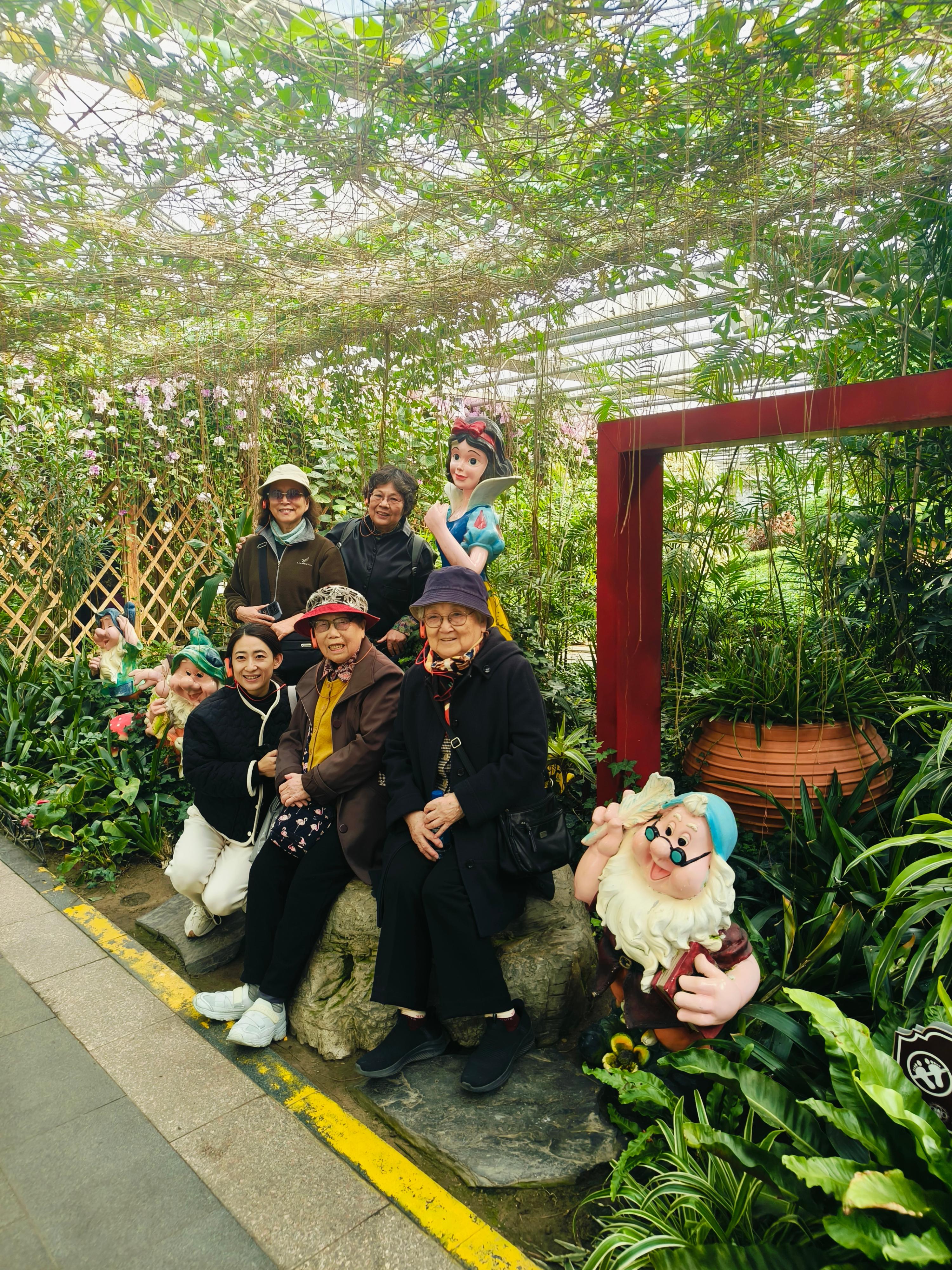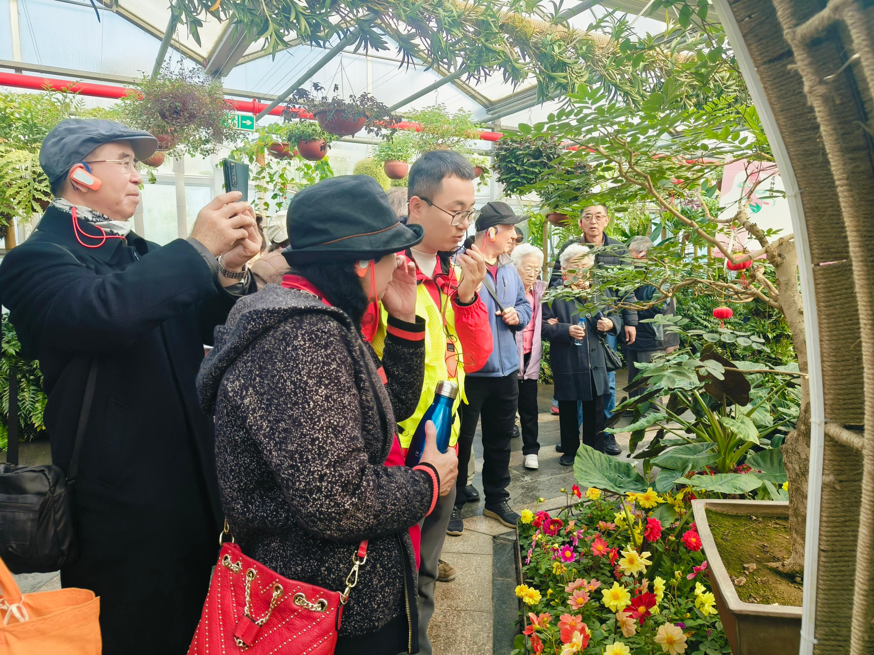 参观第一站,老师们来到世界花卉大观园,这里由七大温室和十五个花园广场组成,其中温室内全部采用电脑控制的通风、加湿、恒温、滴灌等新技术,拥有丰富的植物资源和优美的景观设计,既有各式各样的温室花园,种植着国内外珍稀植物,也有开放式的园林景观,让老者们能够在自然中尽情放松,享受宁静与美好。