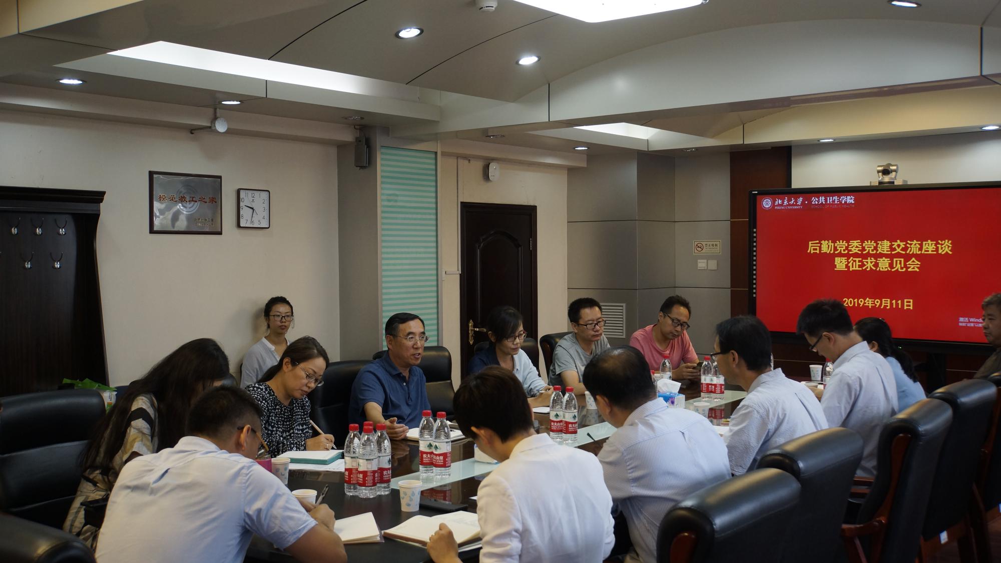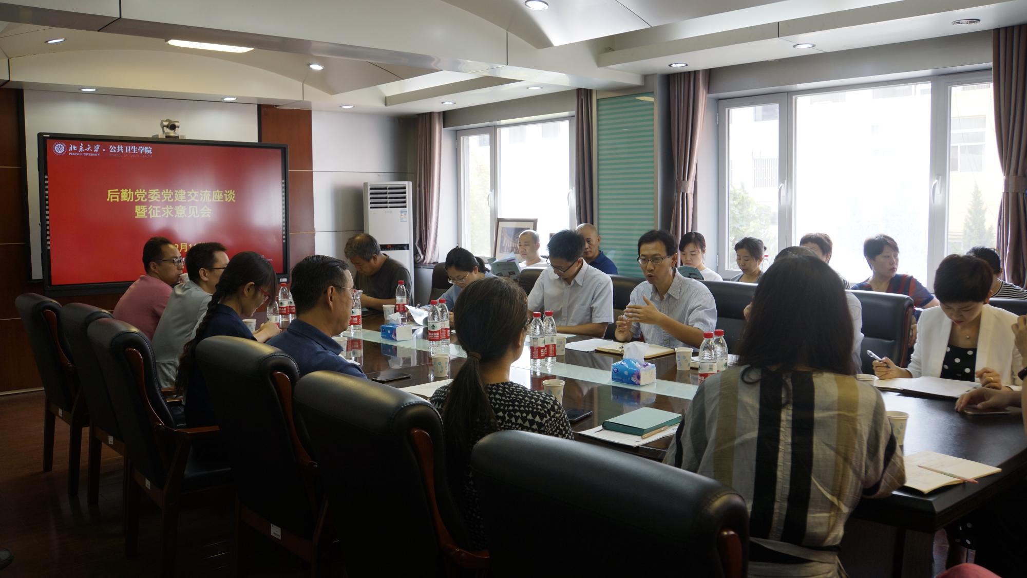 在讨论环节,各位支部书记/委员踊跃发言,提出自己的意见和建议,共同探讨两个党委不同支部间合作共建的可能性,比如妇幼卫生学系和幼儿园在幼儿保健上的合作、营养与食品卫生学系和医学部食堂在菜品营养上的合作、劳动卫生与环境学系与教室管理服务中心在设施人体功效学上的合作等。
