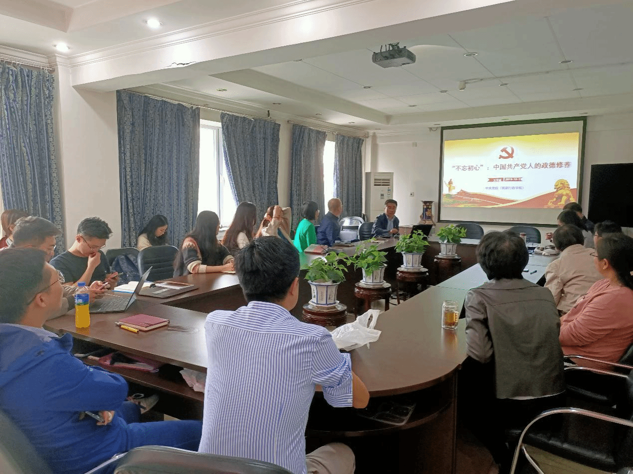 为积极响应中共中央提出的在全党开展“不忘初心、牢记使命”主题教育活动,教育党员同志坚定理想信念、砥砺前行,350vip浦京集团官网卫生政策与管理系教工和研究生党支部于2019年10月11日邀请中央党校文史部教学秘书、中国史教研室副主任王学斌老师来为党员同志讲党课。此次活动由杨莉老师主持,党委委员王志锋老师也参加了本次党课,卫管系教职工党支部及研究生党支部21位党员同志积极参与本次主题教育活动。