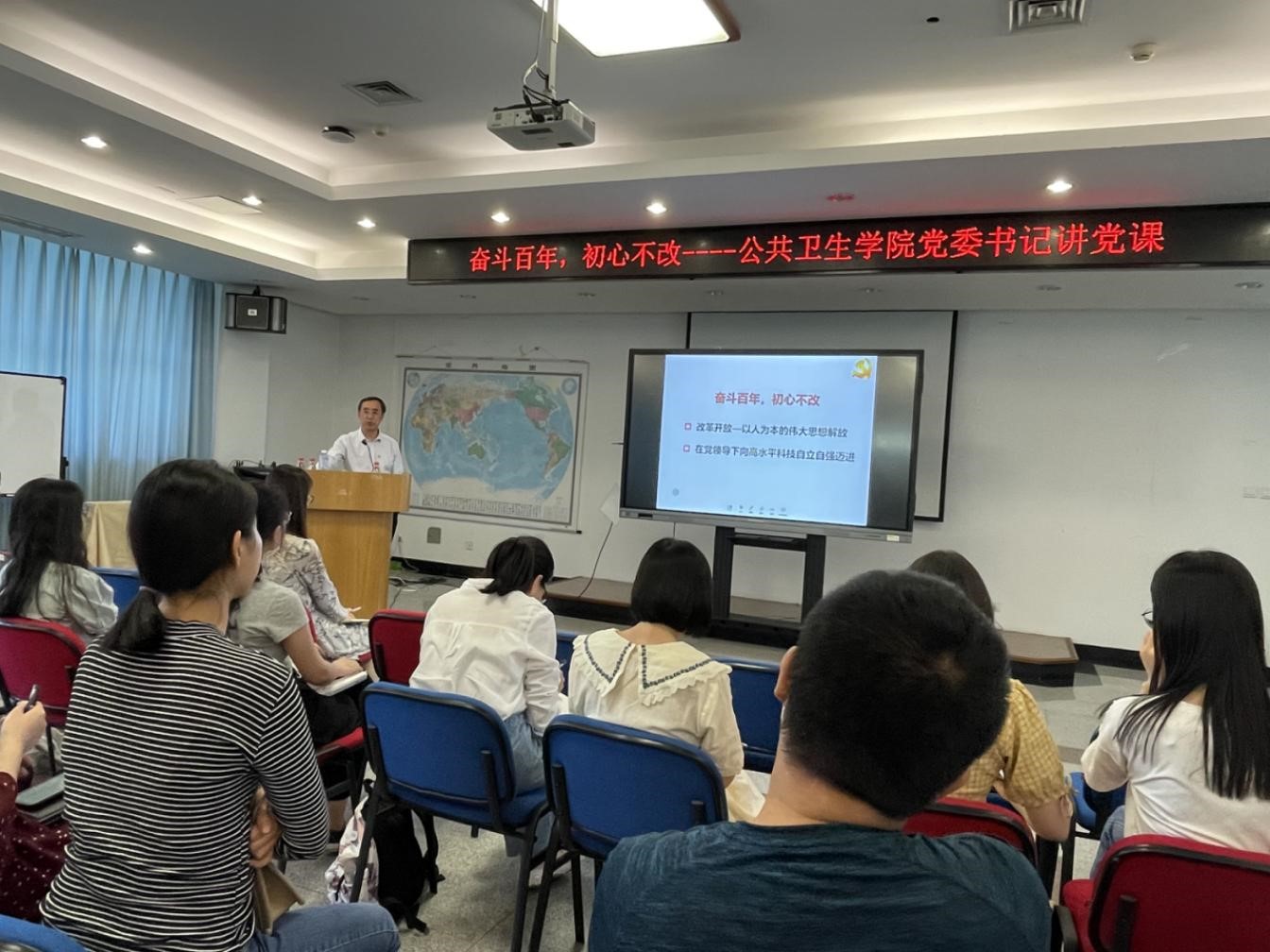为庆祝中国共产党百年华诞,学习贯彻习近平总书记在党史学习教育动员大会上的重要讲话精神,毒理中心党支部、毒理学系研究生党支部、学院行政党支部和营养与食品卫生学系研究生党支部于2021年6月3日下午在树华楼卫三教联合举办了党委老师讲党课活动。邀请350vip浦京集团官网党委书记郝卫东老师开展以“奋斗百年,初心不改”为主题的党史学习教育。