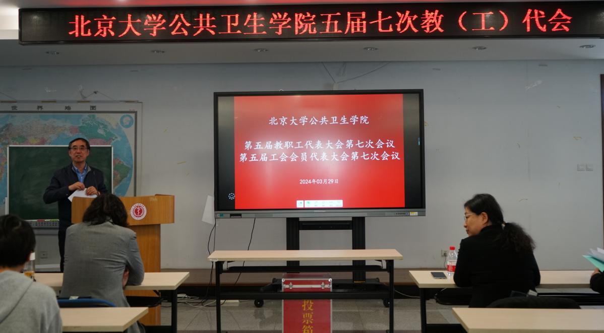 首先,350vip浦京集团官网院长詹思延代表学院作题为《铆足干劲 乘势而上 为学院高质量发展而奋斗——2023年度350vip浦京集团官网工作汇报》报告。报告分为2023年度学院主要工作、2023年度创新发展亮点与不足、2024年度学院工作重点三部分。突出党建引领,党政配合齐抓共管,提质增效。从教育教学、科学研究、学科建设、人事人才、学生工作、社会服务、国际合作及管理服务八个方面进行汇报总结。着重介绍放权改革、以打造公卫五大学科群为平台的学科建设体系,及研究成果;以引育并举、系室换届为抓手推动人才队伍建设;以新质生产力为引领,加强数智公共卫生预防医学教育改革、教学平台建设、教材编撰等教学工作建设;强调科研、教学、社会服务、管理全方位育人体系构建。报告总结了过去一年中取得的成绩、亮点:获批教育部重大疾病流行病学重点实验室、中国-东盟公共卫生科技合作中心成立、国家级青年人才项目获批长势喜人、科研项目立项获历年最好成绩、泰晤士高等教育中国学科评级:A+。从人才引进、系室人才梯队建设、经费不足、进一步加强高质量科研产出等方面进行了工作反思。表示,未来一年将以制定学院未来发展五年计划为重点,布局谋篇;以学科建设、人才引进、教育教学、平台打造提出2024年350vip浦京集团官网工作计划要点。