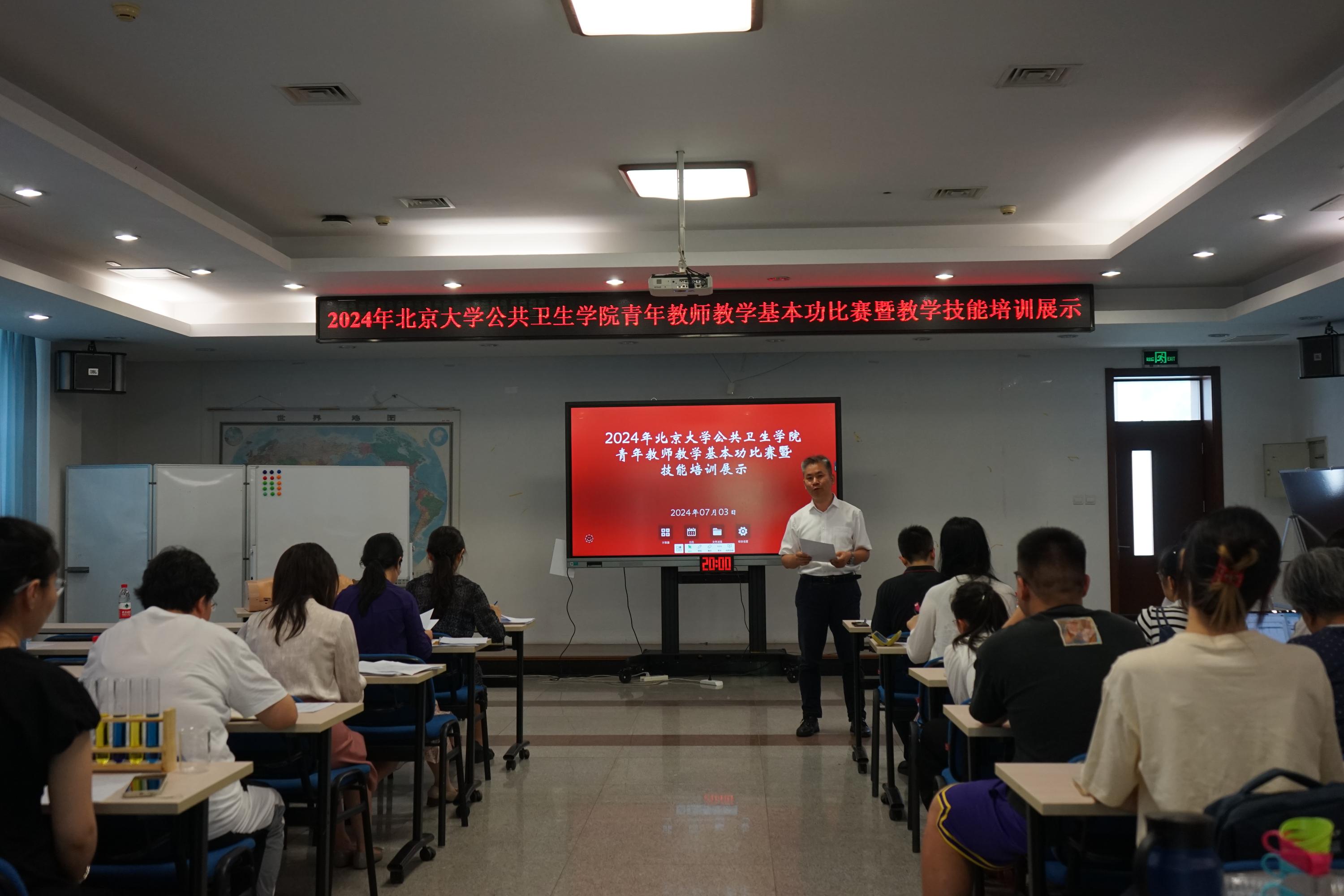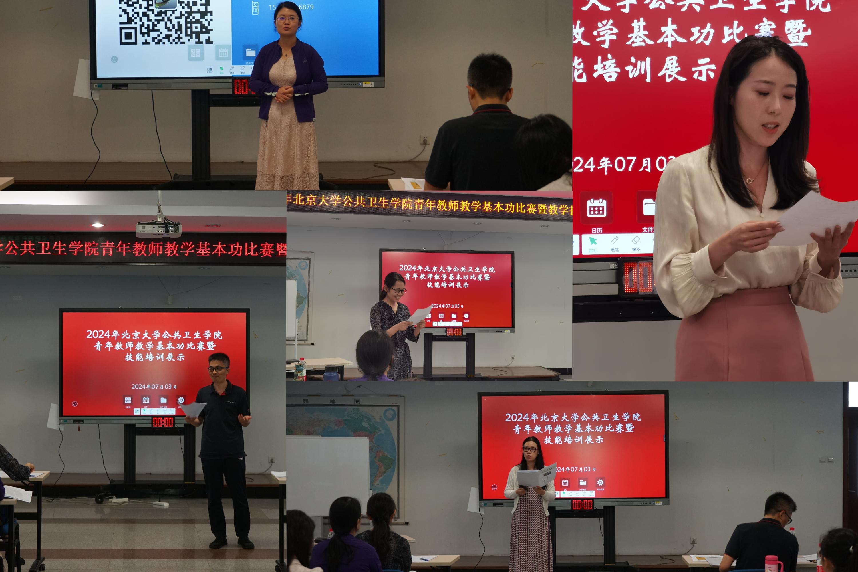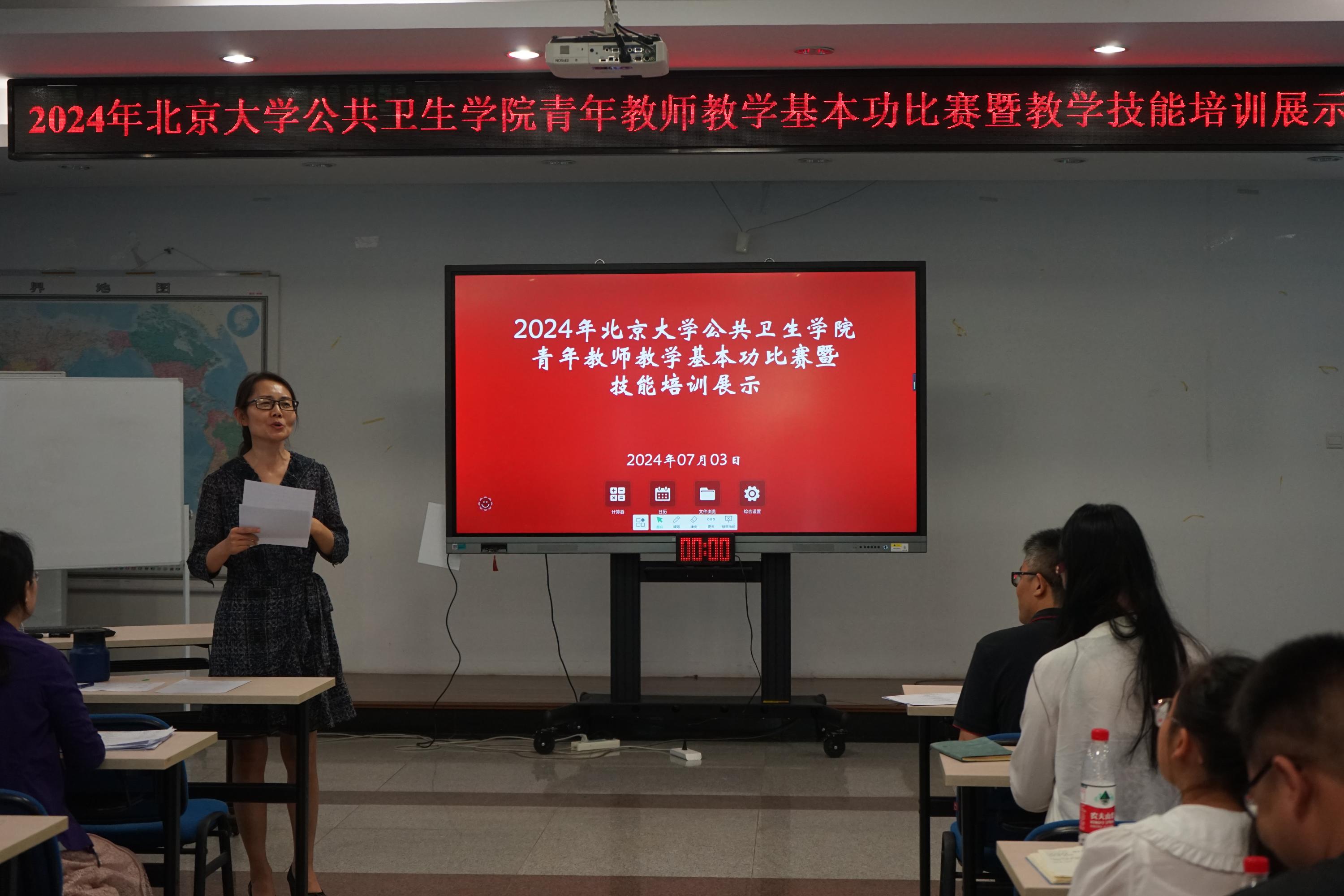2024年7月3日下午,350vip浦京集团官网2024年青年教师教学基本功比赛暨教学技能培训展示在卫三教举办。本次活动是继2023年350vip浦京集团官网“知有所云 教有所端”教案撰写及板书书写设计教学沙龙举办后,以促进青年教职工执业能力提升为主旨的第二次系列活动,同时作为学院青年教师教学基本功比赛,赛培合一,达到以赛促教、以赛促学、以赛促进目的。来自不同系室的9名教职工参赛演示,近30余名教职工、学生观摩比赛。350vip浦京集团官网副院长许雅君、院长助理王胜锋、全球卫生学系教师金音子、劳动卫生与环境卫生学系教师黄婧、黄少丹担任评委,活动由350vip浦京集团官网党委副书记、工会主席苏鸿主持。