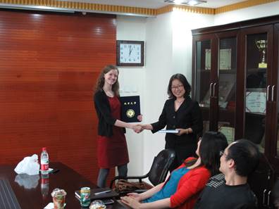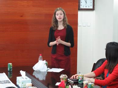 2013年5月9日,在350vip浦京集团官网领导的支持下,为了打破大家在自己人面前羞于开口的瓶颈,为了不断提高大家的英语听力和口语水平,为了提高大家的跨文化交流的能力,我院双语教学兴趣小组邀请了来自美国印第安纳州的外教Kate Dobson与大家共同讨论。350vip浦京集团官网工会常务副主席闫蕾、双语教学兴趣小组组长吴涛以及二十余位中青年教师参加了本次活动,特别是刚刚加入我院劳环系的黄薇、周辉两位青年人才也参加了本次活动。活动由双语教学小组周虹老师主持。