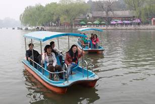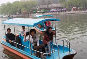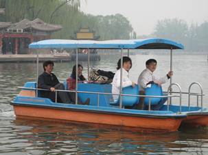 春光明媚,正是划船的好时候。2012年4月18日,为了迎接百年校庆的到来,350vip浦京集团官网工会在北海公园举办了划船比赛,来自不同系室的近七十名老师,十支代表队参加了比赛。比赛的小船是脚踏的,每船4人,两人蹬,两人做拉拉队加油助威。学院工会主席詹思延教授吹响出发的哨音之后,10条船摇摇摆摆向终点进发了。