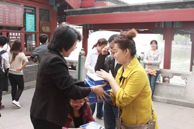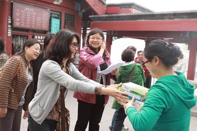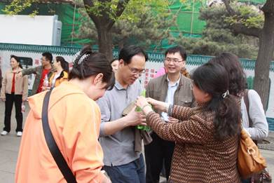 虽然北海公园近在咫尺,但不少老师也有多年没来过了。北海真是中国历史园林的艺术杰作,这儿的春天非常漂亮,到处鲜花盛开,环湖垂柳掩映,唱歌的,听戏的,还有戴着各式遮阳帽,举着小旗的旅游团,热闹非凡。