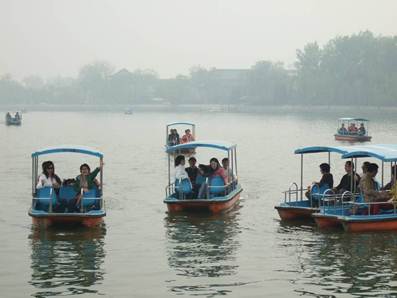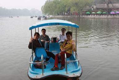 欢声笑语中小船抵达五龙亭折返点