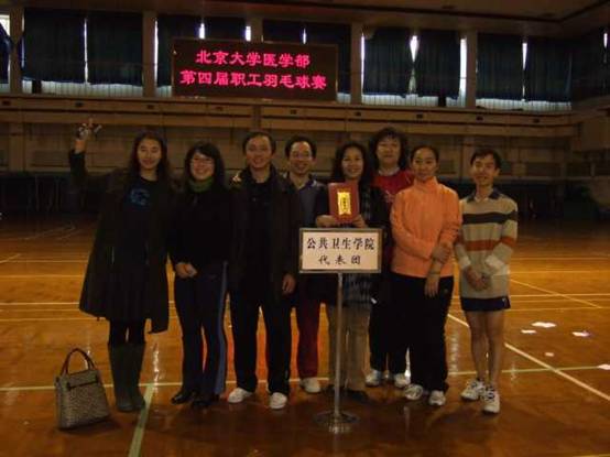2008年11月20日,由易伟宁(男单)杨健(女单)、任涛、高燕秋(混双)、蒋建军、罗树生(男双)、陈丽颖、高苏堤(女双)8人组成的我院羽毛球代表队参加了医学部第四届羽毛球团体赛。在第一轮小组赛中,我院先后与后勤、基础、产业进行对决。在与后勤、产业的比赛中,我院男单、女单、混双发挥出色,毫无悬念地获得了胜利。在与基础的比赛中,考虑到基础的整体实力较强,其中女单选手尤为强劲,我们及时调整战略。比赛开始后我院男单易伟宁充分发挥自身优势,凭借超强的技术实力赢得了首场比赛的胜利。我院混双与对方展开了激烈交战,由于我院两名混双选手配合默契,最终赢得了比赛的胜利。女单和男双均因实力略逊一筹而不敌基础。比赛的焦点集中在两队的女双上了,经过改组的女双巧妙配合,杨健的沉着老练加上陈丽颖的轻巧积极,二人一上场后便占据场上的优势,在对手比较强劲的情况下,连胜两局,获得了小组比赛的胜利,成功晋级四强。最后与实力强大的机关队展开了冠亚军之争,队员们顽强拼搏,最终获得了医学部团体羽毛球比赛的亚军,为学院争得了荣誉。