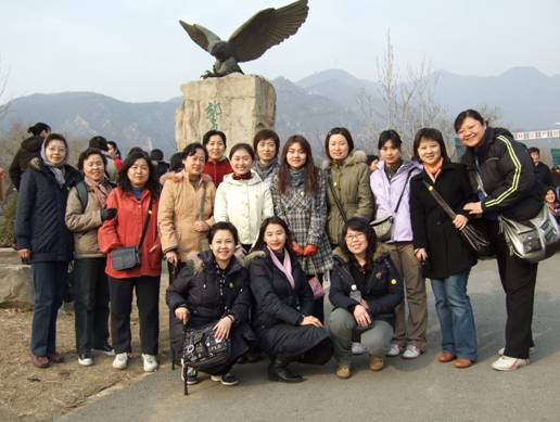 3月10号上午在春意盎然的阳光照耀下,我院二十多名女教工跟随医学部工会来到鹫峰脚下,大家先在此留影。