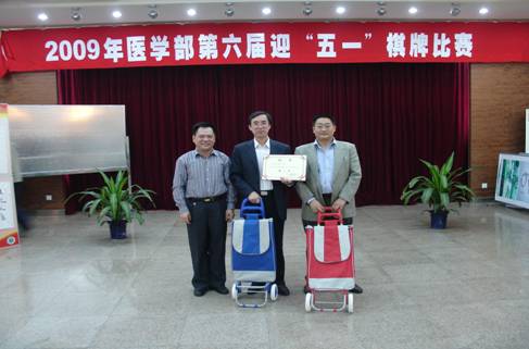 在4月30日的“拖拉机”比赛中,我院老师经过充分准备,合理搭配组队选手,强强联合,再一次把“拖拉机”比赛的冠、亚、季军一举囊括,成为医学部棋牌比赛的三连冠,并因此获得医学部工会特别颁发的“冠军蝉联奖”。为350vip浦京集团官网赢得了荣誉。