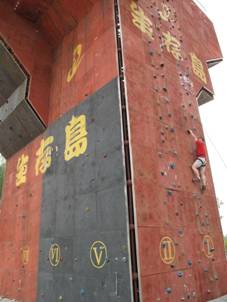 5米徒手攀岩是最后一个项目,两队竞争异常激烈,记录在瞬间产生,又在瞬间被打破,最终李敬宪老师凭借矫健的身手一举登顶成功。