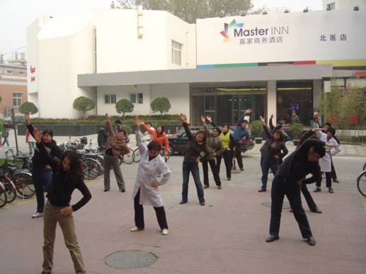 迎奥运营造全民健身氛围,从现在起每天下午三点在公卫楼前全院教职工开始学做第八套广播体操。为了您的健康,请安排好工作,尽量抽点时间来活动一下。