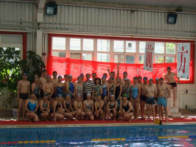 9月11日中午全院教工又在大堂游泳馆举行游泳比赛活动,学院领导参加、由各系主任、支部书记、工会小组长率队,在一片加油声中,大家你追我赶气氛高昂,仿佛是一场别开生面的奥运。