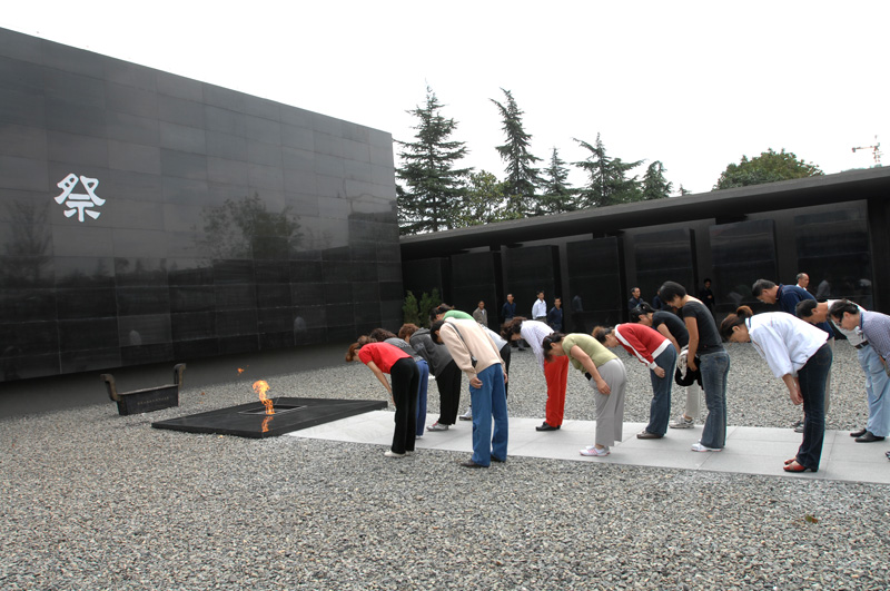 参观了“侵华日军南京大屠杀遇难同胞纪念馆”。这是南京市人民政府为铭记1937年12月13日日军攻占南京后制造南京大屠杀事件而筹建的。1937年12月13日,南京城沦陷,30万以上中国人被残杀。日军在这片土地上疯狂杀戮、奸淫妇女,抢劫、焚烧和破坏,其手段之残忍,行为之野蛮令人发指!纪念馆正面石壁上的馆名为邓小平亲笔题写“1937.12.13-1938.1” 一行黑色大字,标明了日军南京大屠杀的时间,中、英、日三种文字镌刻的一组黑色大字:“遇难者300000”,令人触目惊心。悼念广场有“历史的桥梁”、“残破城墙”、“断裂的军刀”3组建筑,以及“遇难者头颅”、“断臂”两组雕塑和长明火等主体设施。院内散置着13块记载着13处大屠杀主要遗址史实的石碑。遇难同胞遗骨陈列室呈棺椁形,陈列着由该处挖掘出的部分遇难同胞遗骨。旁边竖立着母亲像雕塑和刻有遇难者姓名的“名单墙”。大型墓室史料陈列厅,陈列着“侵华日军南京大屠杀暴行”专题史料,展出400多幅日军现场屠杀照片、60多件实物和数十件档案资料等。大批由照片、访谈、录像、文字组织的珍贵史料再现了当年惨绝人寰的场景,大家很悲痛也很震惊! 这段血腥历史是现代文明史上最黑暗的一页,是每个中国人都不该遗忘的耻辱,是中国人永远的伤痛。印象最深的是一个12秒的水滴装置,两边黑色大理石墙上镶嵌着许多照片。70多年前,古都南京,血流成河,白骨累累,大屠杀持续六个星期,如果以秒来计算,每隔12秒就有一个生命消失。随着一滴水落下,灯光打在一张照片上“一个生命逝去”。为表达对30万遇难同胞的哀思,同志们在死难者祭台前集体默哀三鞠躬。
