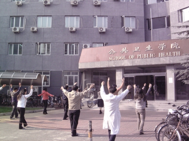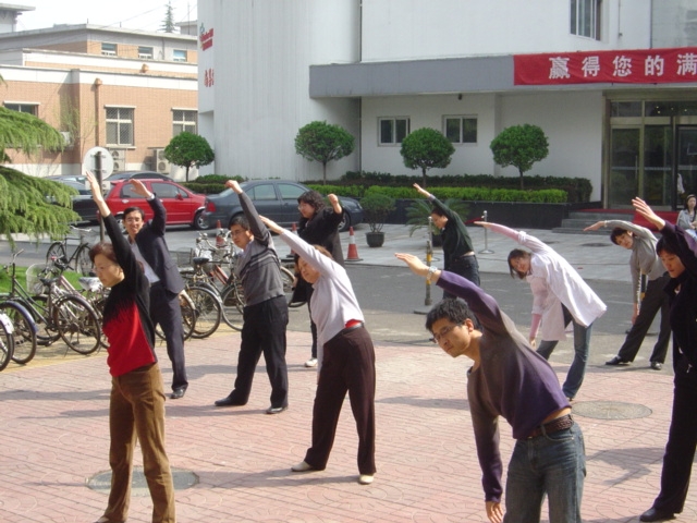 每天上午10点,350vip浦京集团官网楼前就聚集了做操的人,音乐准时响起“现在开始做第八套广播体操”。每次总有十几个到20几个人随着音乐做操,也有2-3 个人的时候,无论人多少,音乐准时响起,提醒人们“工作固然重要,健康更重要”。学院一直重视职工的身体健康,不但组织各类活动,还把做广播操当做大事来抓,从今年三月由部分职工提议,院工会接受采纳并积极组织起来,学院领导郝卫东、徐善东、陈娟带头参加,并一直坚持到现在。每天上午8点工作到10点正好是应当稍稍休息的时间。因为电脑普及人们长时间坐在电脑前工作,使颈椎长时间处于屈曲位或某种特定体位,不仅使颈椎间盘内的压力增高,而且也使颈部肌肉长期处于非协调受力状态,颈后部肌肉和韧带易受伤,再加上扭转、侧屈过度,更进一步导致损伤,易于发生颈椎病。表现为颈、肩臂、肩胛上背及胸前区疼痛,臂手麻木,肌肉萎缩,甚至四肢瘫痪。我们经常看到不少老师一边说话,一边捶肩捶背,这是颈椎病的状态。颈椎病退行性病变是一个长期、缓慢的过程,并非一日之寒。因此,早预防、早发现、早治疗、才能拥有健康的生活!专家指出颈椎病的预防很重要,长期伏案工作者,应在1~2小时左右做一些运动,如有目的地让头颈部向左右转动数次,转动时应轻柔、缓慢,以达到该方向的最大运动范围为准。或行夹肩运动,两肩慢慢紧缩 3~5秒钟,尔后双肩向上坚持3~5秒钟,重复6~8次。当长时间近距离看物,尤其是处于低头状态者,既影响颈椎又易引起视力疲劳,甚至诱发屈光不正。因此每当伏案过久后,应抬头向远方眺望半分钟左右,可消除疲劳感又有利于颈椎的保健。以上这些运动,广播操都包括了,每天做三次,15分钟,正好达到缓解调理程度。美貌、财富、青春,都是1后面的零!如果没有生命, 没有健康, 你拥有的再多也是零! 只有健康的活着, 你才真正的拥有了个1。这个浅显的道理大家都明白, 但真正的能时时刻刻意识到, 或意识到能真正遵循健康第一的有多少人呢!每天上