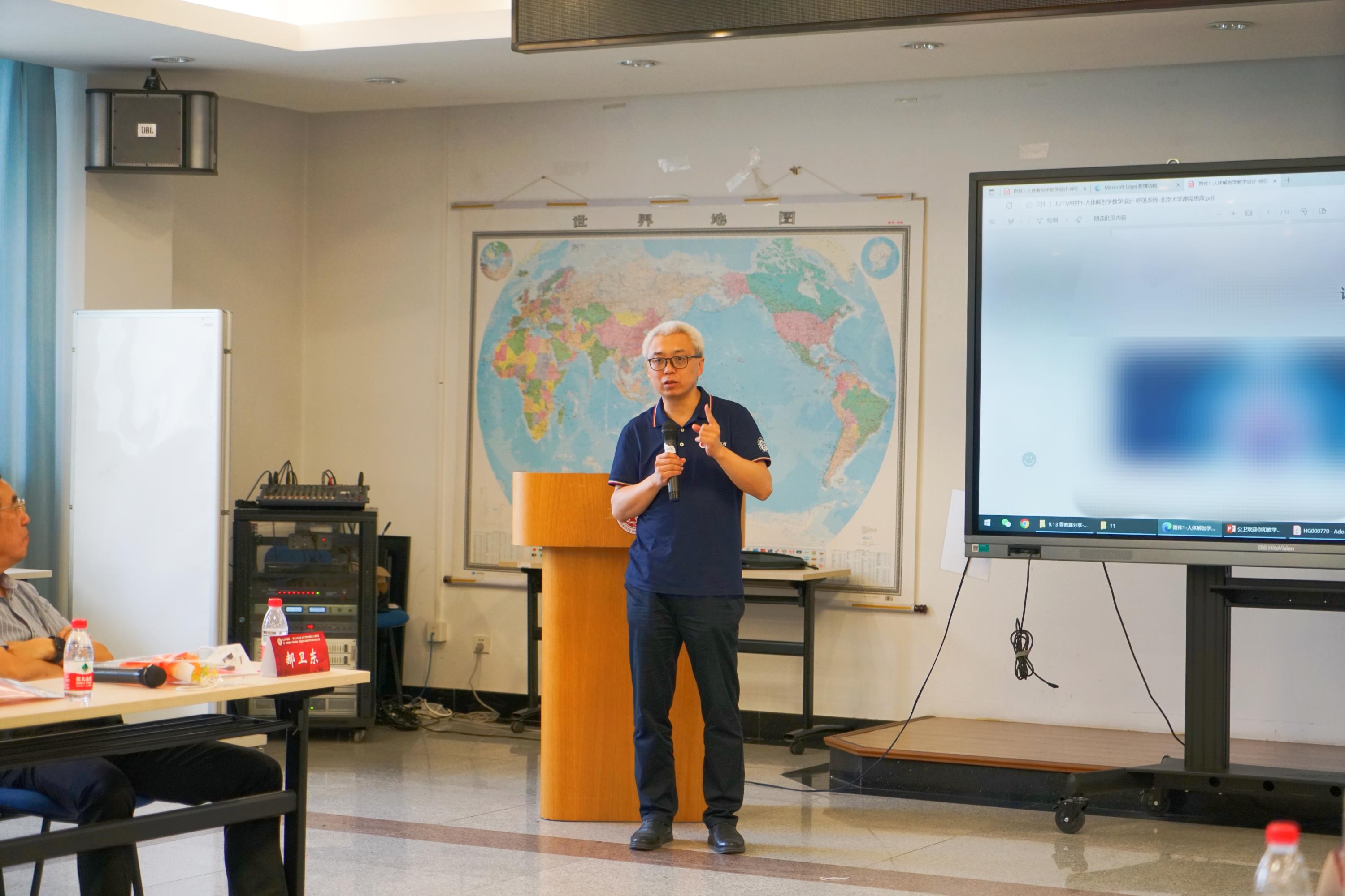 2023年9月13日,为庆祝第39个教师节,总结活动成效,加强对教案撰写和板书书写设计的培训,学院在卫三教举办了教案撰写及板书书写设计教学沙龙,学院党政领导班子全体成员、2023年新入职新教职工和博士后以及来自各系室的教职工代表、工会干部等40余人参加了活动。活动邀请北大医学图书馆馆长、基础医学院人体解剖学与组织胚胎学系常务副主任张卫光教授做专题辅导,获奖代表金音子副研究员、黄婧副研究员分享了参加青教赛、教案撰写的经验和体会,院长詹思延教授作总结讲话。活动由副院长许雅君教授主持。