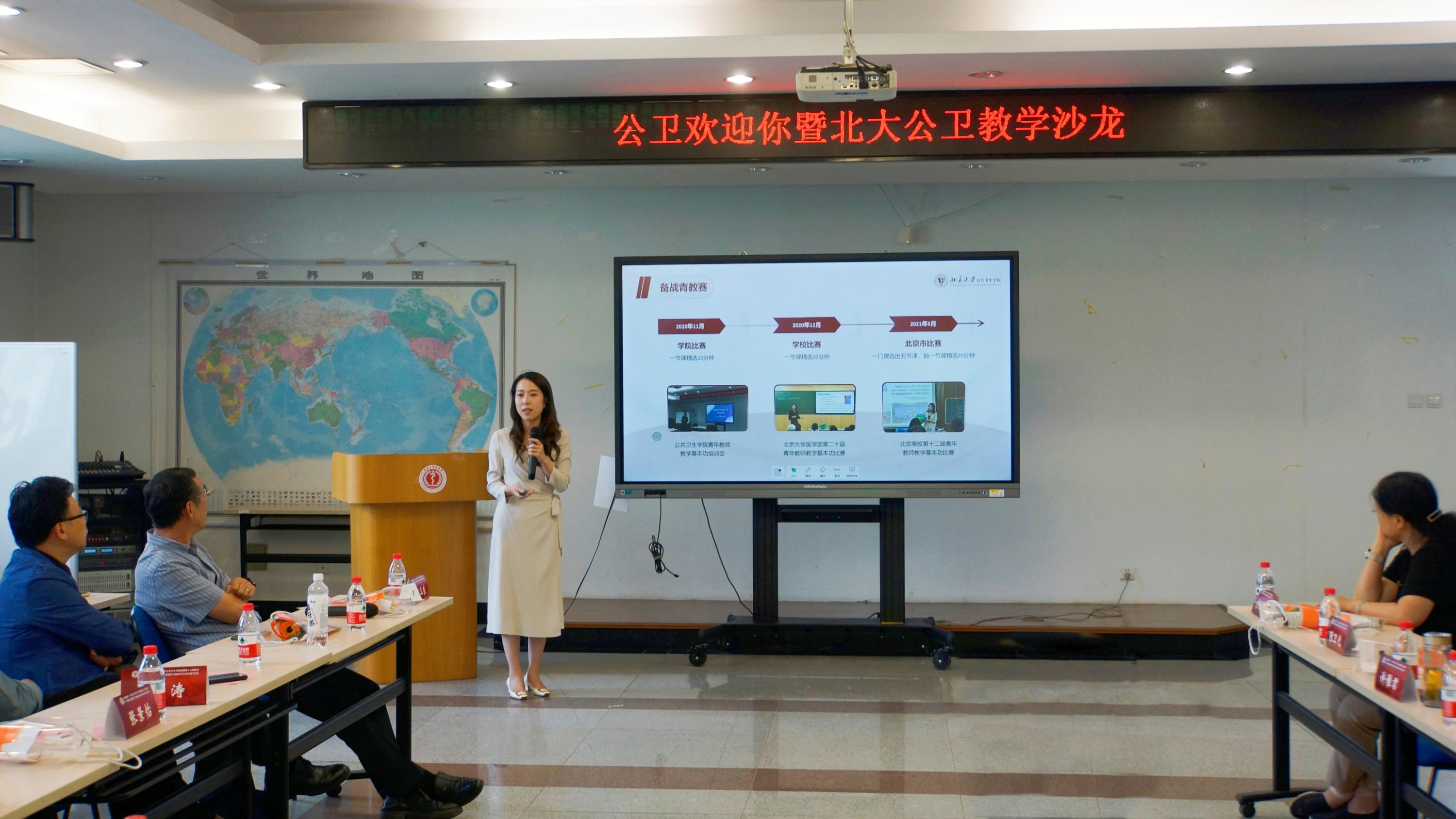 全球卫生学系金音子副研究员分享了自己参加青教赛的经历和收获,从方法、技能、理念三个方面介绍了获奖经验,着重介绍如何从设计一堂课到规划一门课的感悟和体会。