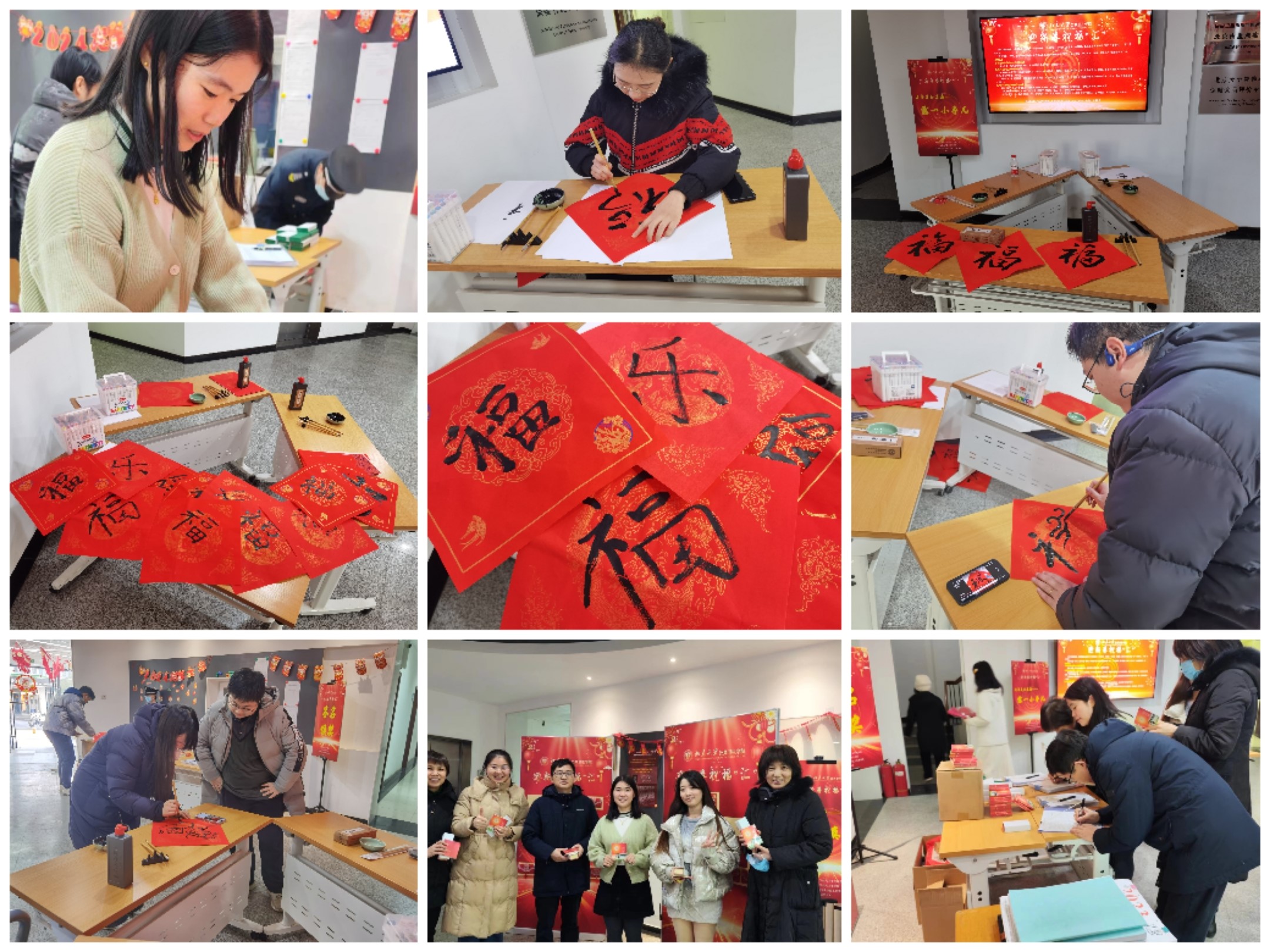 本次活动以“过年是认真滴”作为主题词,设立“日子有点甜”之在一层大厅备有新年小甜品零食,让路过的老师同学自取,“红包真红”之红包猜谜、祝福语留言以及“露一小手儿”之写字画画,传承中华传统文化,撰写福字、水彩笔描绘丹青等三个具体环节。为便于参与,活动场所提前布置,不设服务人员,全部活动不需报名,随时到场,自主自助参与。活动从2023年工作日倒计时两天开始,至跨年2024年新年第一个工作周截止。