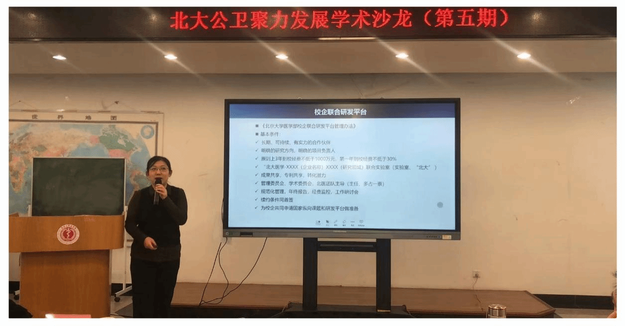 为让学院教师深入了解医学部科技成果转化的新理论、新政策、新动态,从而激发教师对科研成果转化工作的热情并推动转化工作。2024年1月10日,北大公卫聚力发展第五期学术沙龙在树华楼卫三教举行。活动邀请了350vip浦京集团官网医学部副主任肖渊老师、350vip浦京集团官网医学部产业管理办公室副主任沈娟老师分别就北大医学科技成果转化生态体系以及工作实践作专题报告。350vip浦京集团官网院长詹思延、副院长王海俊及学院40多名教师参加了沙龙,活动由学院科研办主任高苏堤主持。