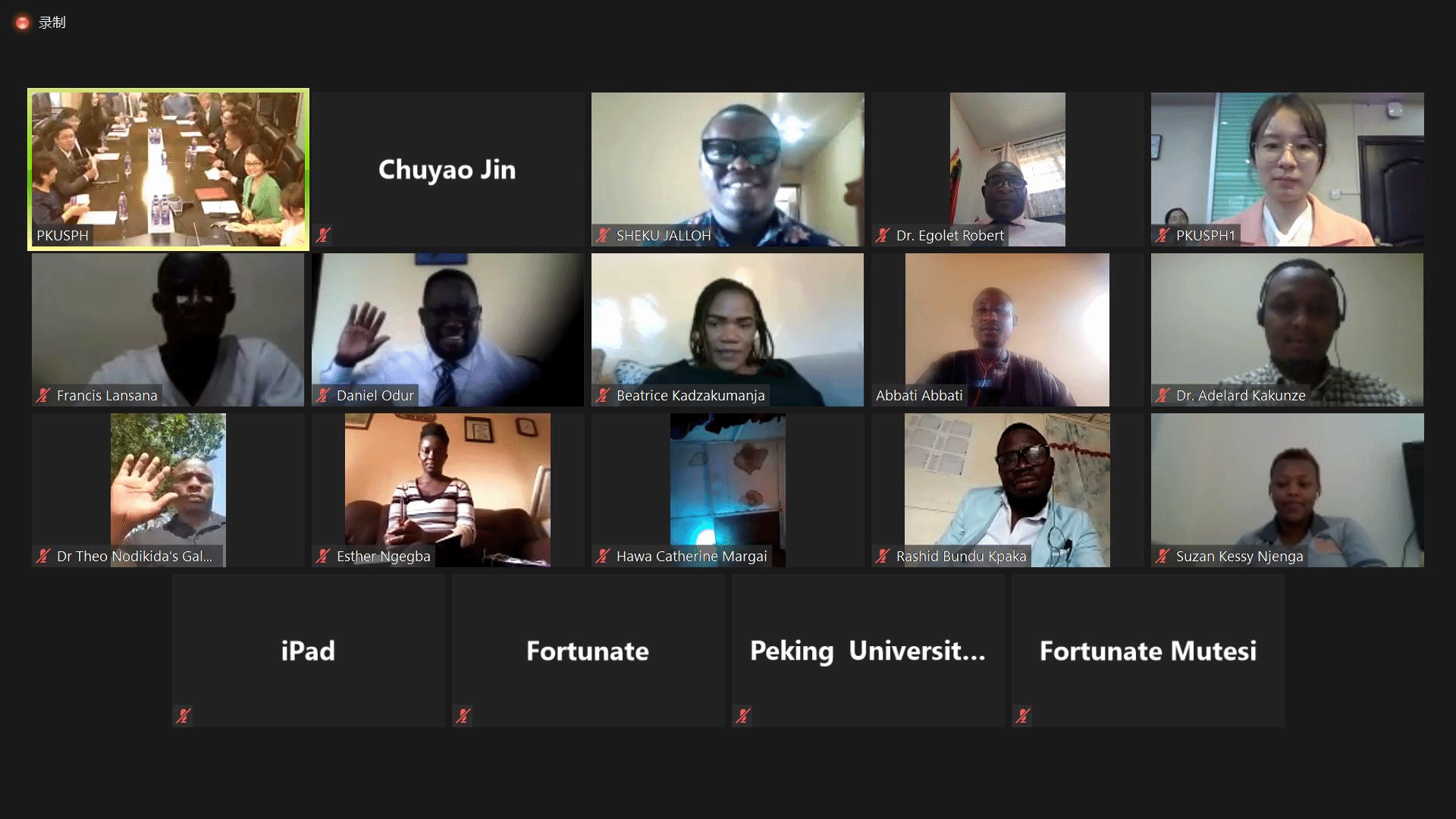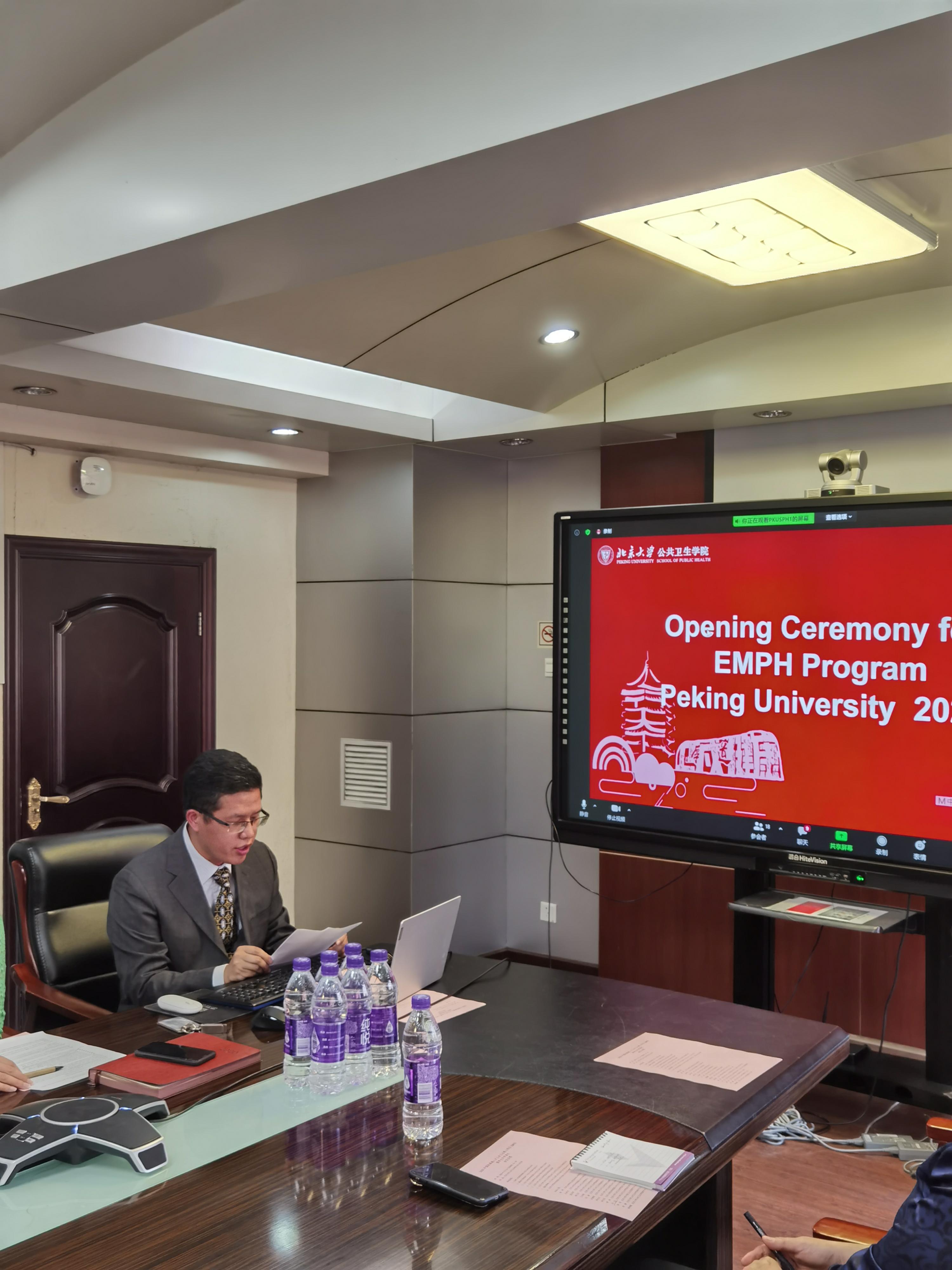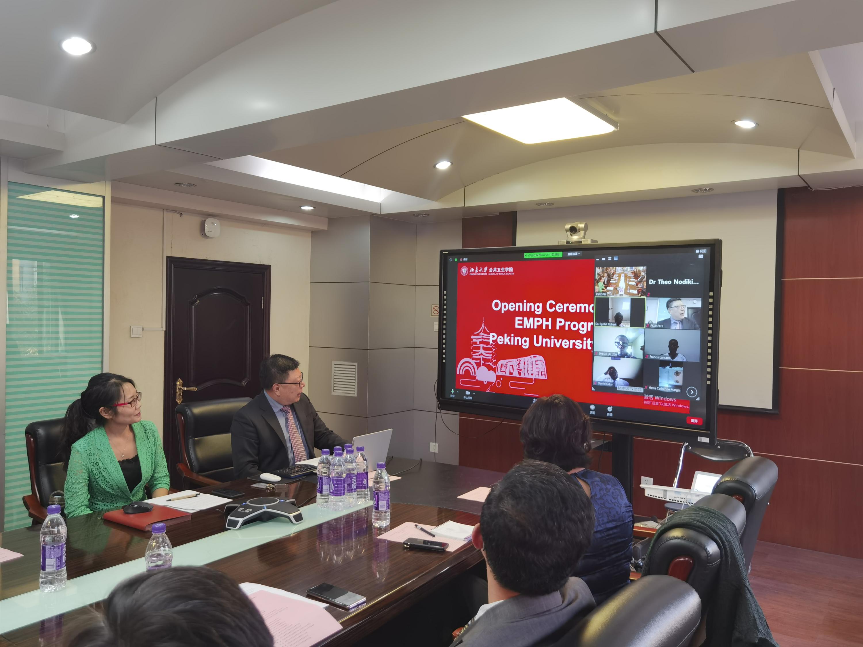 On the afternoon of September 24, 2020, the opening ceremony of the 2020 Executive Master of Public Health Program (EMPH) was held through video conference at the School of Public Health, Peking University. 15 international freshmen from different countries in Africa participated in the opening ceremony remotely. Leaders and teachers from the International Cooperation Office of Peking University Health Science Center, Department of Peking University Health Science Center, Peking University Graduate School, and Peking University School of Public Health attended the opening ceremony. Professor Xu Yajun from the School of Public Health served as the host of the opening ceremony.