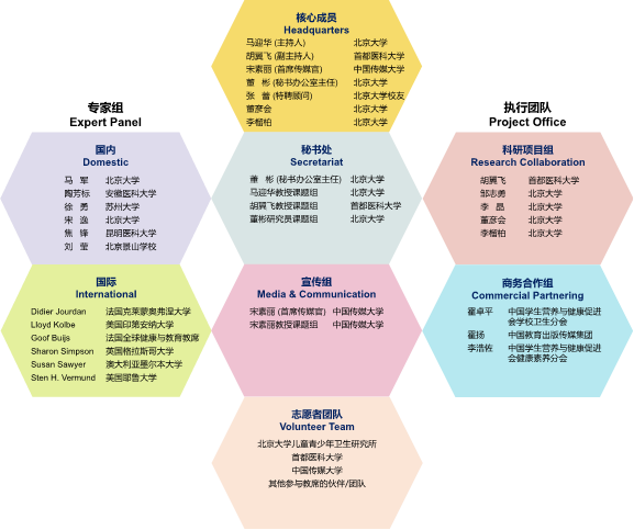 国际专家组:Didier Jourdan(法国克莱蒙奥弗涅大学)、Lloyd Kolbe(美国印第安纳大学)、Goof Buijs(法国全球健康与教育教席)、Sharon Simpson (英国格拉斯哥大学)、Susan Sawyer(澳大利亚墨尔本大学)、Sten H. Vermund (美国耶鲁大学)