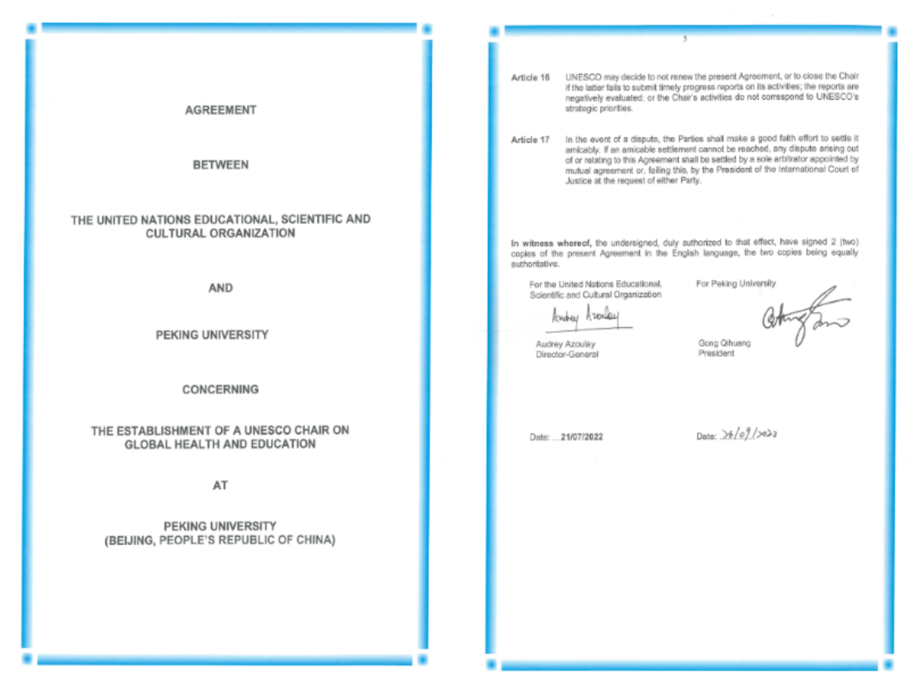 2022年12月31日,联合国教科文组织在350vip浦京集团官网设立“全球健康与教育”教席,马迎华任教席主持人。(350vip浦京集团官网新闻网:https://news.pku.edu.cn/xwzh/19a68a8aec384eeaab4db596033ff168.htm)