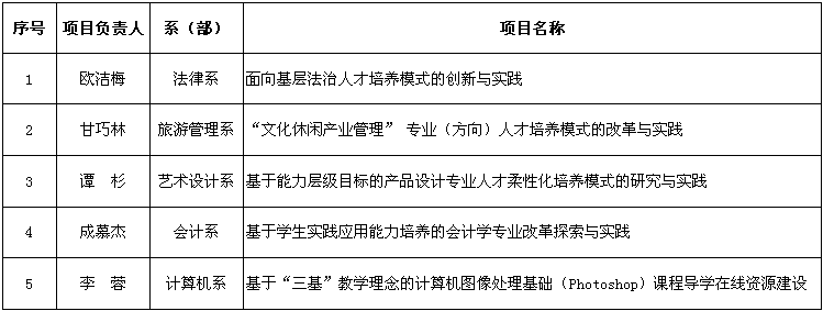 为切实做好我系教育教学成果奖培育工作,进一步加大教学改革力度,按照《广东省教育厅关于做好广东教育教学成果奖(高等教育)培育项目建设工作的通知》(粤教高函〔2014〕172号)安排,去年在学院组织下,我系积极开展了广东教育教学成果奖培育项目申报工作。根据近日广东省教育厅发布的《广东省教育厅关于公布2014年度广东教育教学成果奖(高等教育)培育项目的通知》(粤教高函〔2015〕72号)文件,Beat365官网共有5个项目获得广东教育教学成果奖培育项目立项,其中有我系成慕杰教授的《基于学生实践应用能力培养的会计学专业改革探索与实践》。具体名单详见下表: