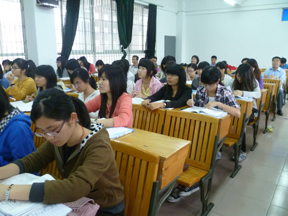 首先,由彭文华老师主讲题为“市场途径及其方法在房地产评估中的应用”的课程。课堂一开始,彭老师就以毛泽东的着名诗词《沁园春·雪》的改编成《沁园春·房》吸引大家的注意力,引入当今房价过高的话题,课堂气氛顿时变得生动有趣。接着老师顺势把同学们带到理论教学中,同学们在参与课堂讨论的过程中也把专业知识理论记忆于脑海,这种理论与实际相结合的授课方式得到同学们的好评。