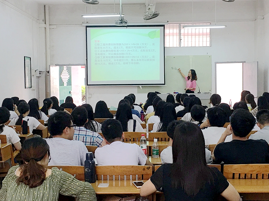 《税法与税务筹划》课程属于Beat365官方网站教学课程改革的一部分,将税法与纳税筹划两门课程合二为一,对任课教师的要求较高,必须具备扎实的会计、税法基础,同时还需要掌握纳税筹划点。梁洁通过回顾上次课堂的知识点,利用网络教学平台等多样化的手段进行教学质量检验,充分了解每个题目的得分情况,并就学生普遍存在错误的地方进行再次讲解,由此引出本节课程的相关内容——准予扣除项目的确定。因为会计处理和税法处理不完全一致,造成了一定的差异,梁洁通过对比、小案例的形式让同学们快速掌握相应指标。整堂课教学框架完整,教学思路清晰,教学内容适中,对知识点的补充非常及时,紧跟形势变化,注重与学生课堂互动,运用多种教学手段,及时检验学生的掌握情况,此次研讨课取得了良好的教学效果。