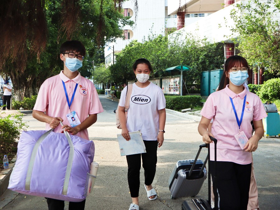 学生党员协助新生搬运行李
