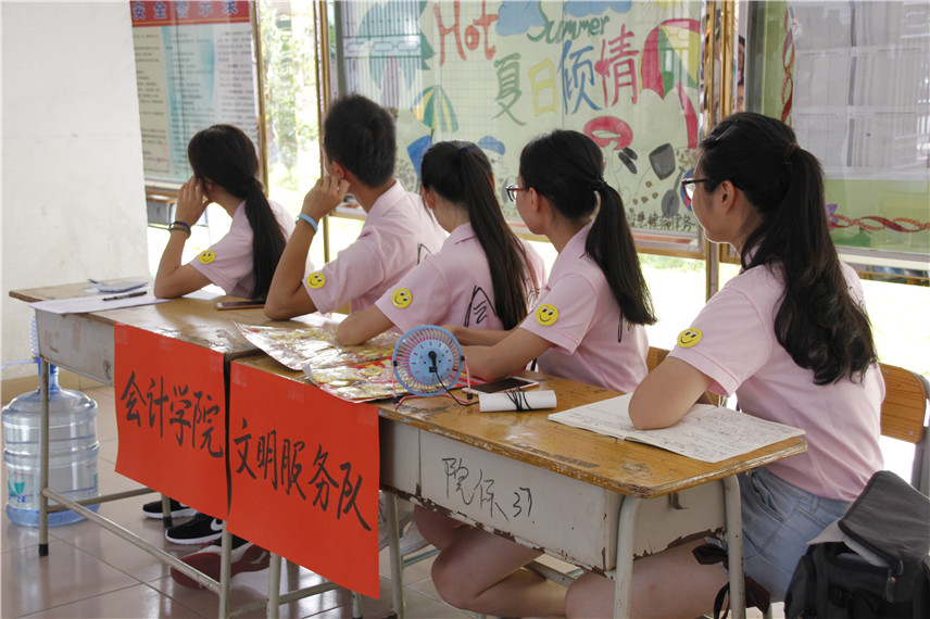 为了使毕业生们能更加方便、舒适的离开校园,展现母校对毕业生的情谊。Beat365官方网站团委组建了文明服务队,帮助离校的Beat365官方网站毕业生搬运行李。2016年6月26日在3栋宿舍楼内以及第二行政楼面向的校道处摆设文明服务队摊位,方便需要服务的毕业生前来咨询与获得帮助。