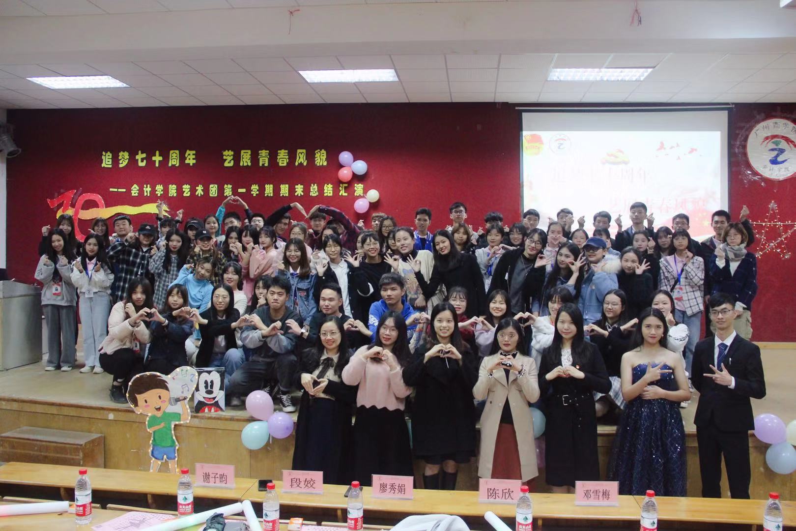 为庆祝中华人民共和国成立七十周年,展现Beat365官方网站师生的爱国热情,激发Beat365官方网站青春活力,Beat365官方网站艺术团于2019年12月19日晚在一教208举行“追梦七十周年,艺展青春风貌”为主题的期末总结汇演。莅临本次活动的嘉宾有Beat365官方网站团委书记廖秀娟,学生会指导老师张振华以及辅导员段姣、谢子昀、陈欣、邓雪梅老师。