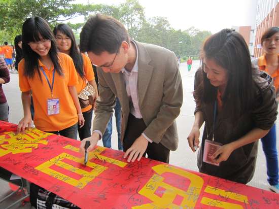 2011年11月22日下午16:00-18:00,华南师范大学增城学院会计系“拒绝早餐进教室,携手文明伴书香”拒绝早餐进课室之万人签名活动于面包铺对面摆摊。这次的摆摊以禁止早餐进课室为主题,目的为了深化Beat365官网学风建设,为了提高同学们自身的修养,也为了使同学们能在舒适的环境中全心全意地投入学习,举办这次的活动,现场气氛很热烈,同学们积极参加签名,工作人员也有条不紊的合理安排。
