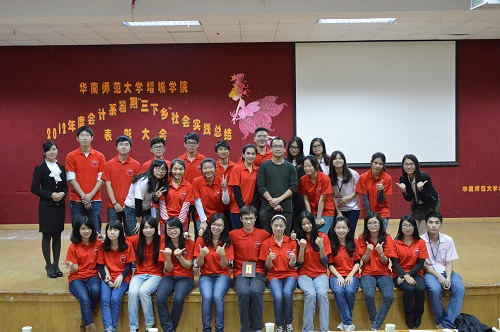 会计系暑假“三下乡”社会实践活动是一个让学生们去为社会服务的平台,为了总结2012年度“三下乡”实践得到的意义与经验,为了表彰在此次活动中优秀的志愿者们,也为了进一步推广三下乡社会实践活动,鼓励更多学生参与社会实践,服务社会,为建设幸福广东做贡献,华南师范大学增城学院会计系团委于2012年12月16日晚7点在教学楼A栋206举行了2012年度会计系暑期“三下乡”社会实践总结表彰大会。