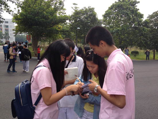 为更好地开展第八届校园文化艺术节之“音乐点亮青春,歌声传递梦想”校园十大歌手比赛的各项工作,宣传有关本次比赛的各项信息,提高活动的影响力。从10月29日上午11点开始,会计系团委学生会干部干事们在面包铺对面开展了为期三天的摆摊宣传活动。