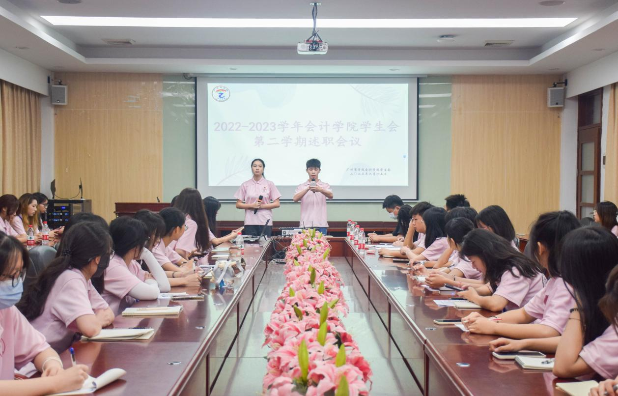 部门汇报环节,学生会各部门代表简述本学期完成的工作与取得的成果,分享工作经验和方法,并指出工作中存在的问题与不足,对今后的工作计划与安排提出展望。