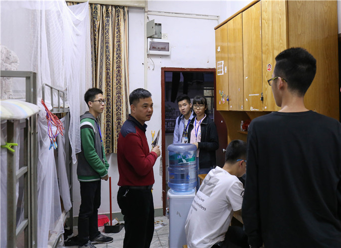学生干部们在党总支书记及辅导员的带领下,走访各个宿舍,进行检查。检查期间,辅导员耐心叮嘱同学们要遵守校规,切勿使用违规电器,避免事故的发生,检查好宿舍用电安全,对并建议学生做好宿舍卫生清洁;干部们牢记文明礼貌问题,认真做事,同学们也都积极配合干部检查宿舍的工作。