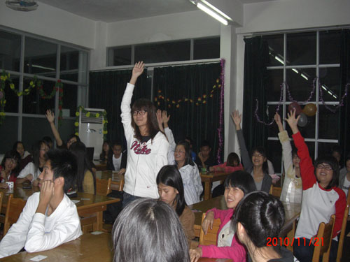 为了缓解严肃沉重的气氛,进行一次激烈的有奖竟答环节,并结合游戏的方法去实行,输了要受到意想不到的处罚。同学们都积极地参加,融入这轻松愉快的氛围中。老师与各部长都加入着这行列中来,尽情的参与。最后以改编爱因为在心中的歌词来唱歌,并警惕大家明白忽略安全措施会危及到人的生命。
