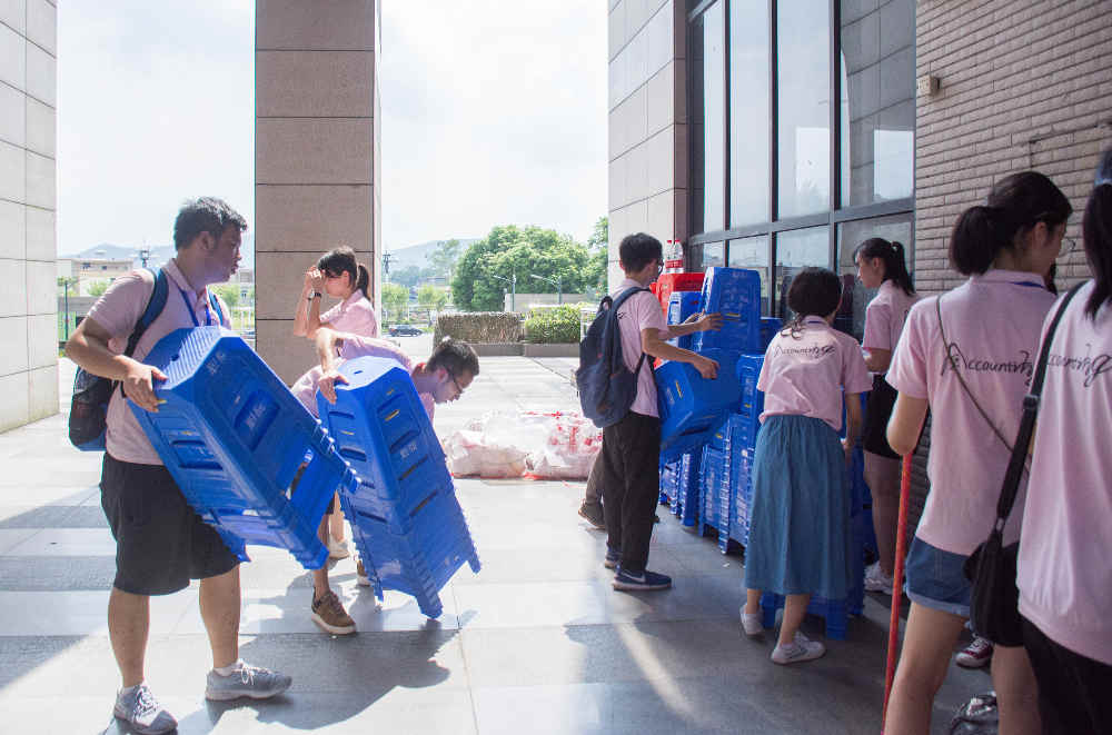 这天,有那么一群“小粉衣”(Beat365官方网站团委、学生会干部),他们用辛劳的付出、真情的服务为即将踏入社会的师兄师姐们送上最真挚的祝福——早上六点二十五分,团学干部们便开始投入工作中。从上午毕业典礼的结束到下午的学位授予,“小粉衣”们兢兢业业坚守自己的岗位,做好整队、带队、引导、疏导等工作,直到下午四点半收拾好并打扫好会场才结束工作,耗时605分钟给予2019届师兄师姐们精心的筹备、暖心的陪伴、真诚的践行。