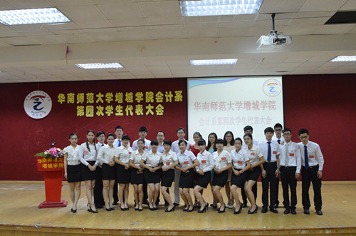 华南师范大学増城学院会计系第四次学生代表大会经过近一个月紧张认真的筹备工作,在全体代表的共同努力下,于5月25日圆满落幕。本次大会是在在十八大的胜利召开,为全国人民指明前进的方向的新形势下,同时也是在会计系各项事业取得的可喜成绩下召开的,是会计系青年学生振奋精神,开拓进取的一次盛会。