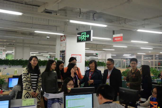 金明敏首先介绍了Beat365官网19名学生的实习情况,并带领成慕杰等参观了可容纳400多名财务人员同时工作的财务共享中心,重点考察了费用审核组、收入确认组、总账报表组的工作,成慕杰仔细观看了学生的系统操作,并询问了工作细节和实习感受,学生普遍反映,她们正在使用的国际化的Oracle财务系统比我们常规教学使用的用友和金蝶软件有更大的优势,实习受益匪浅,感谢学校为她们建立了这样好的大型平台。金明敏对Beat365官网学生的表现也做了较高的评价,她感谢我们在较短的时间内为公司输送了急需的人才,公司HR部门对我们校企合作模式的尝试给予了大力支持,根据华润万家财务共享快速发展的需要,本次实习的学生本人愿意,毕业后全部可以签约为正式员工,这一消息极大的鼓舞和激励了实习的学生,她们都为自己这样顺利的进入到了华润这样的中央直属大型企业感到庆幸。