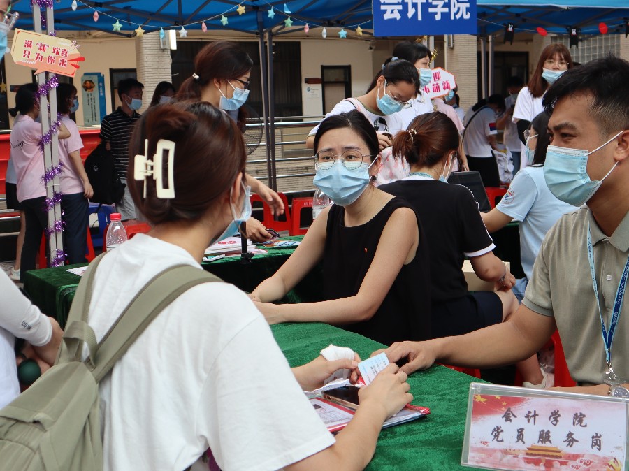 Beat365官方网站在灯光篮球场和迎新报到处均设置了党员服务岗。灯光篮球场处的党员服务岗,有效地对会院新生进行分流,确保迎新工作的顺利进行。从行李寄存处到注册处,到处都能看见志愿者们忙碌的身影,他们耐心指引,解答疑惑,充分展现了党员志愿者们积极向上、敢于奉献的精神面貌。迎新报到现场,教师党员热情地向新生们介绍学校、学院和专业的情况,为新生提供全面周到的服务。行走的“会院徽章”,遍布林荫校道,全方位部署,确保新生顺利报到。