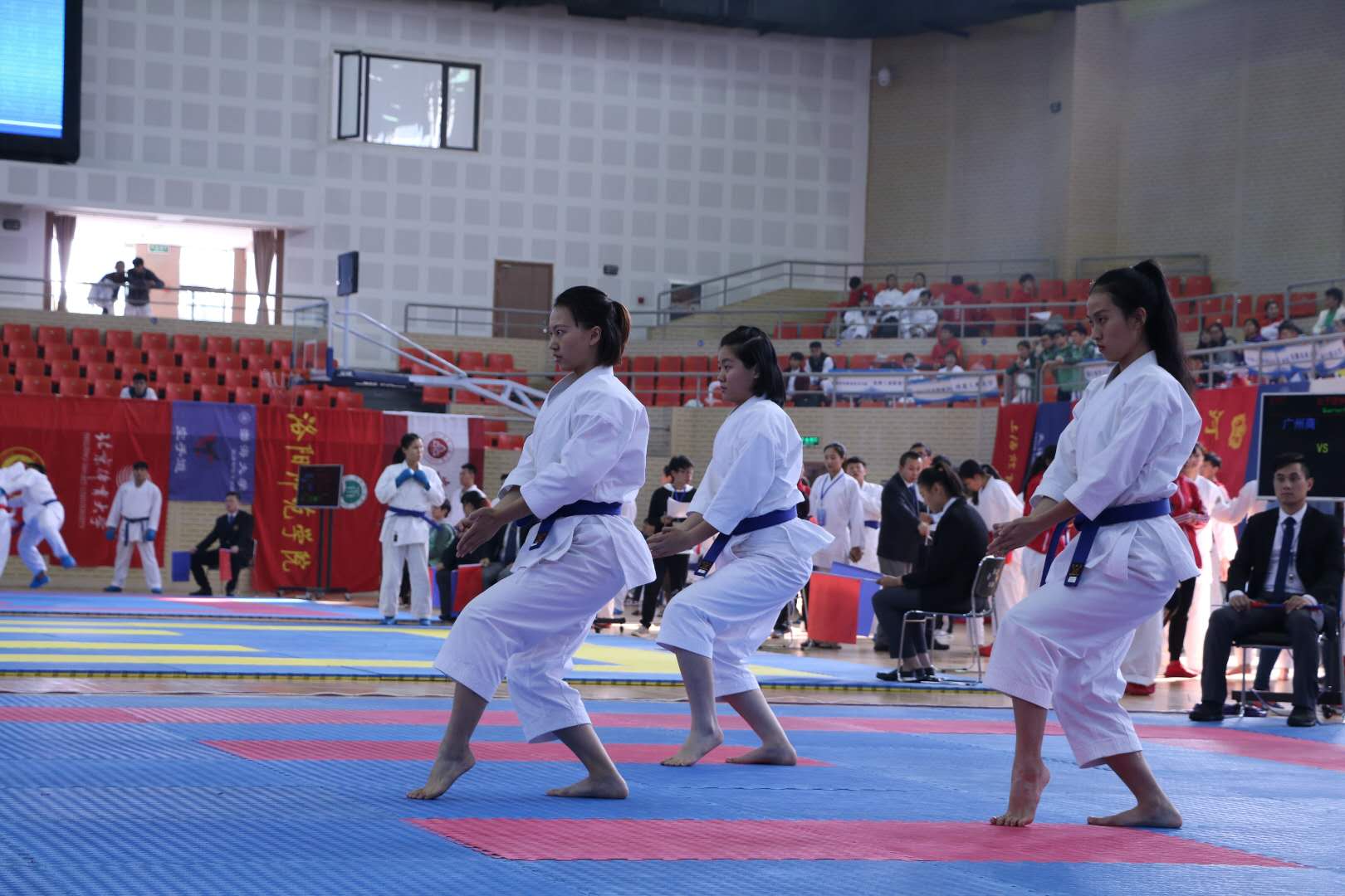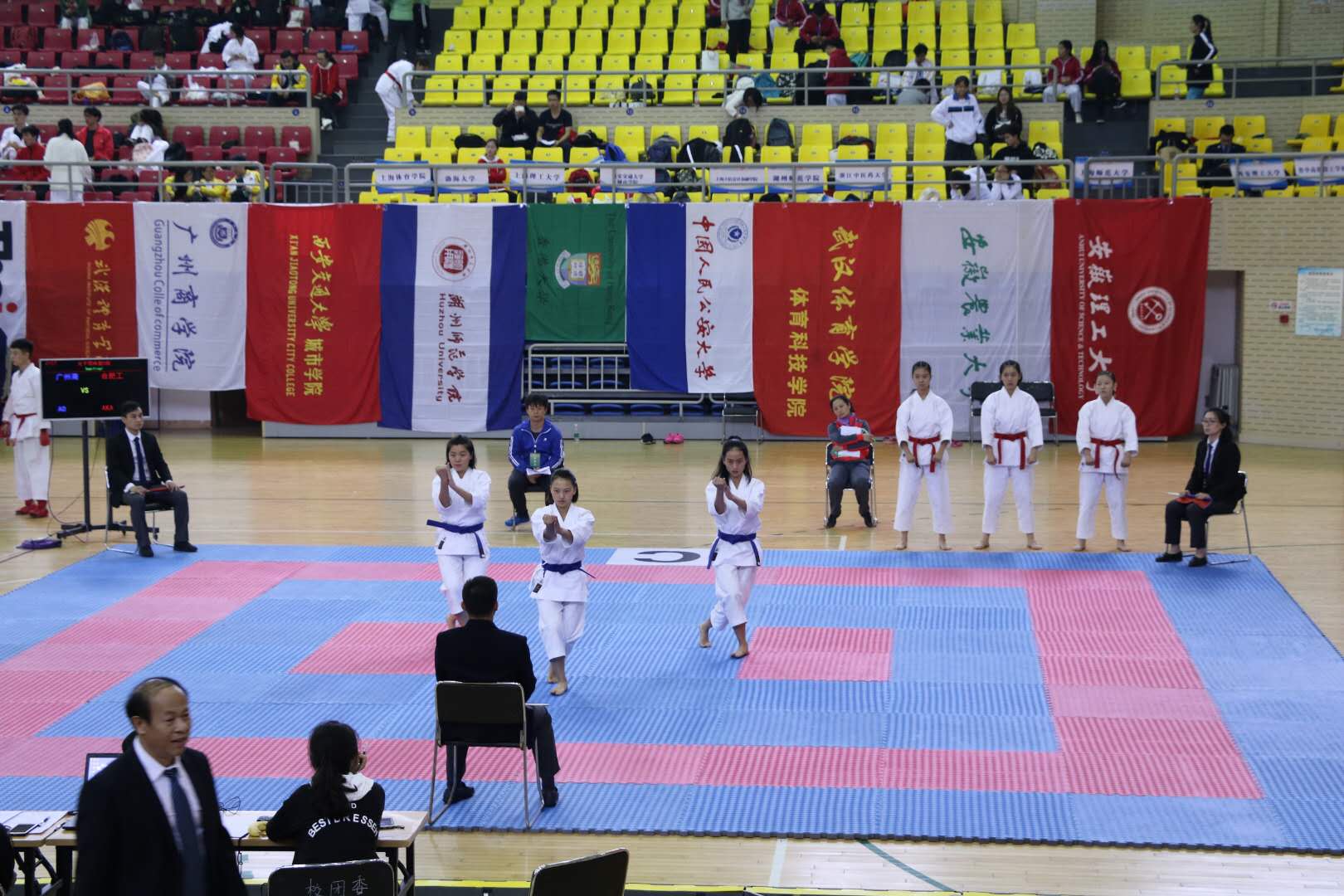 Beat365官方网站江丹、颜乔、李佳玲在第八届中国大学生空手道锦标赛紧张激烈的比赛中