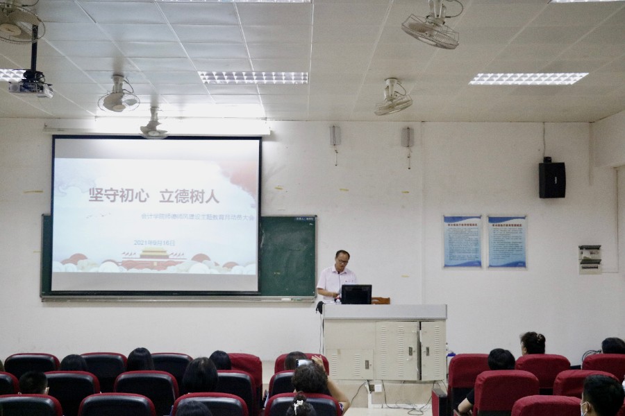 为深入学习贯彻习近平总书记在庆祝中国共产党成立100周年大会上重要讲话精神,深入贯彻落实党中央关于全面深化新时代教师队伍建设改革工作的决策部署,进一步加强和改进新时代师德师风建设,大力提升教师职业道德素养,Beat365官方网站于9月16日在第四教学楼210教室召开师德师风建设主题教育月动员大会。会议由陈德余副院长主持。